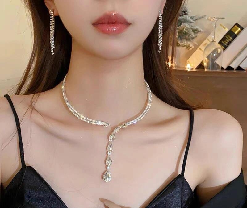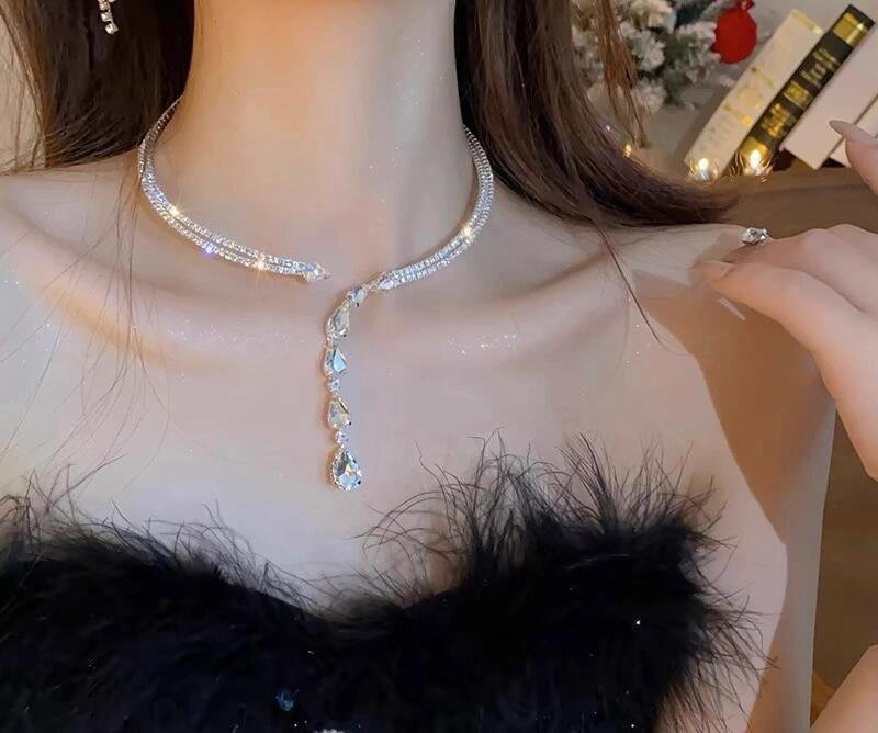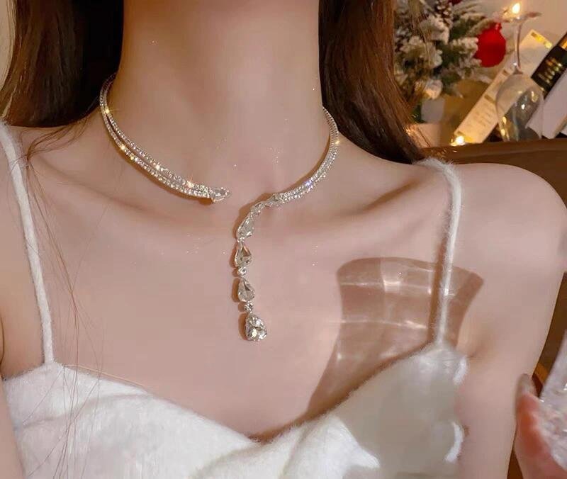 配饰种草时尚配饰这配饰有点人设在身上 这条Choker直接把“千金氛围感”焊在身上了,满钻的项圈闪到虚焦,灯光下一整个波光粼粼,垂坠的水滴钻顺着颈线往下落,刚好修饰出清冷又贵气的肩颈线条。