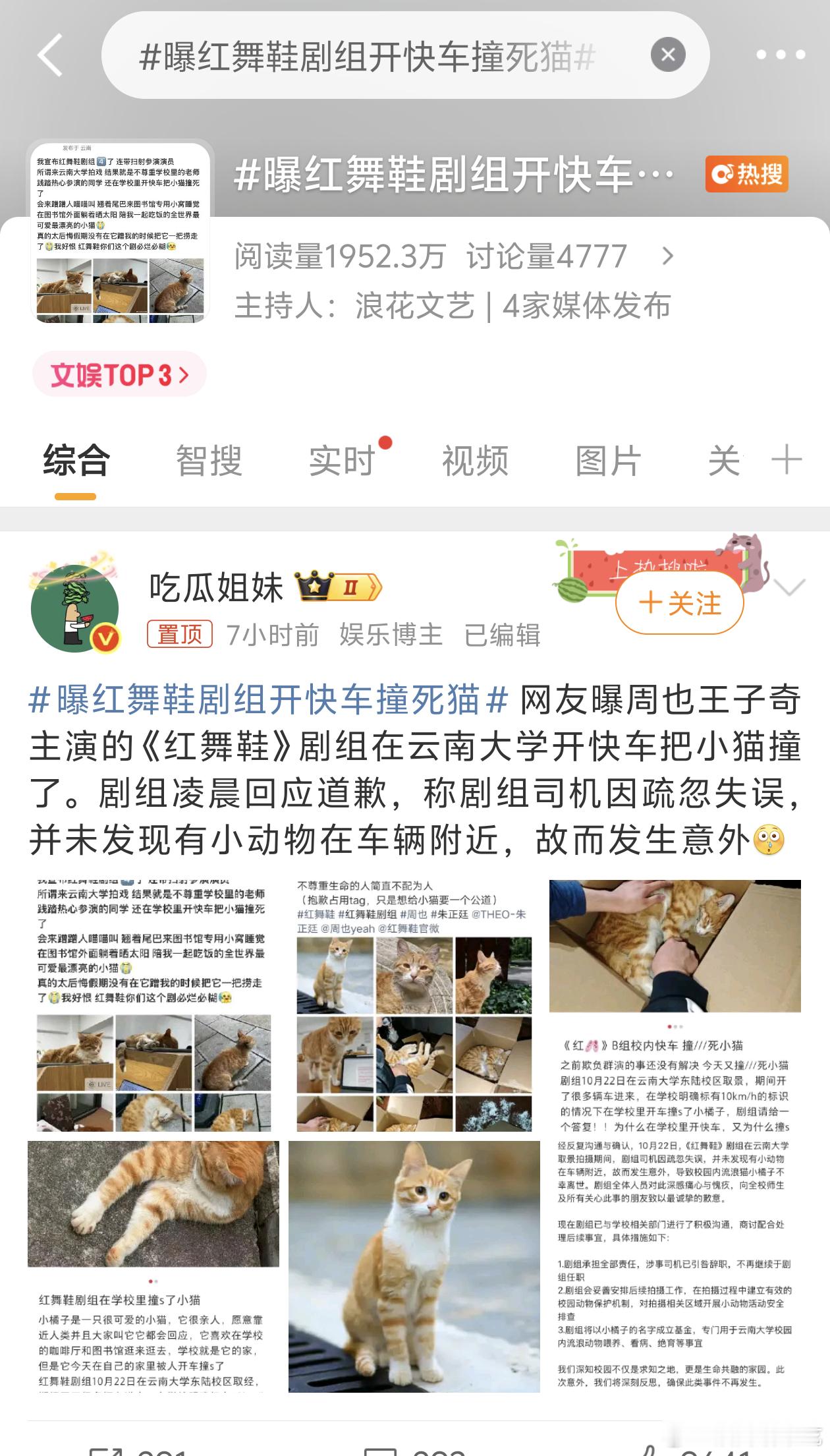 红舞鞋剧组回应了撞死小猫的事,地点是学校,不管怎样这种地方开车必须非常注意吧[黑线]曝红舞鞋剧组开快车撞死猫