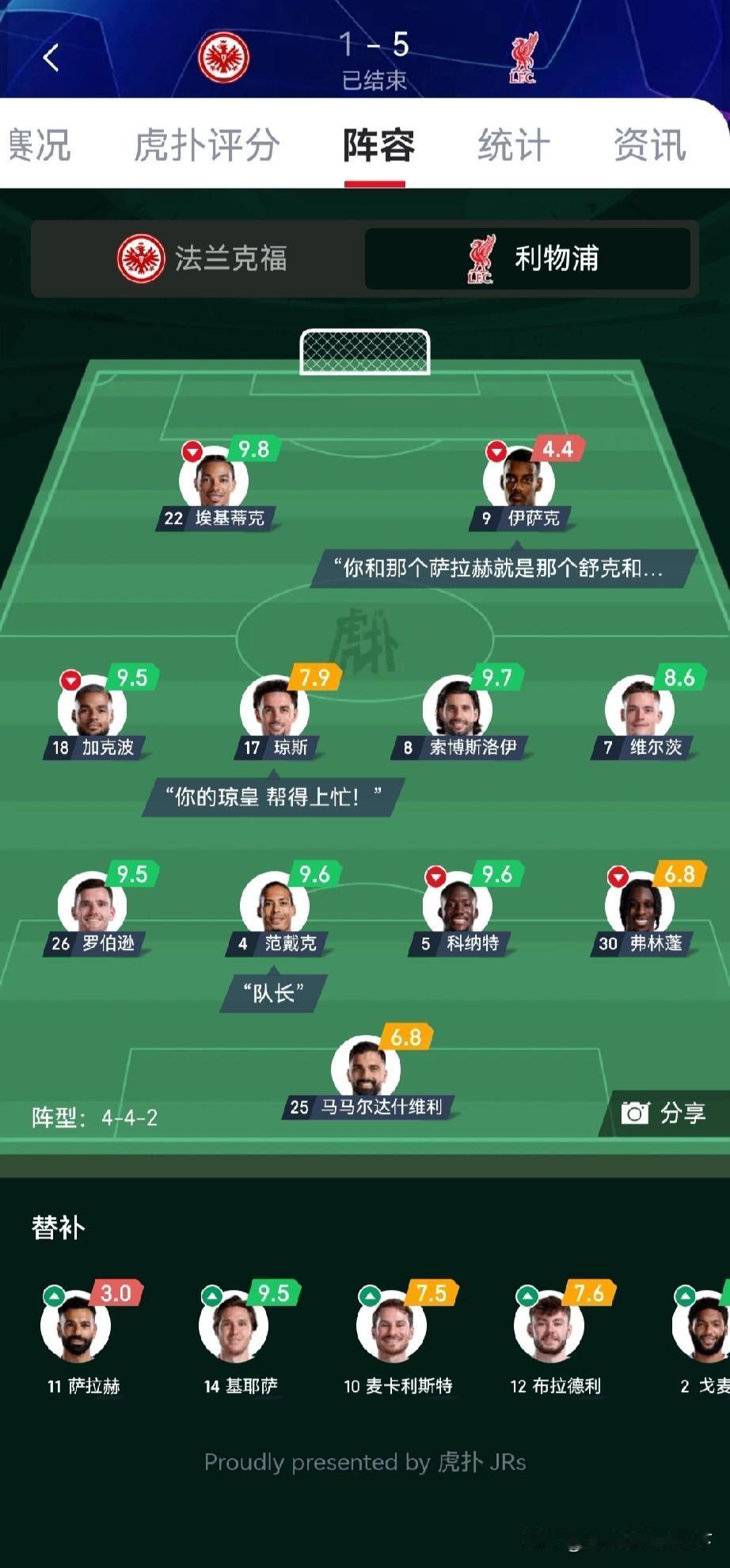 法鹰真是利物浦的好兄弟啊,先送法棍,现在又在危难时刻出手相助。简直就是大善人啊。 不得不说德甲的售后太良心了,球员高价卖给你后,还亲自帮你刷数据,还奉上3分雪中送炭,这商家太良心了。 话说这萨拉赫以后踢替补大家都没意见吧?他不但不传还射不进,维尔茨空门了也不给破个处,看看光头能不能联赛也按替补。 不行法老冬窗去沙特吧,这样对大家都好。 今天斯洛特终于逮到个软柿子捏了一把,希望联赛的状态也能回来吧。