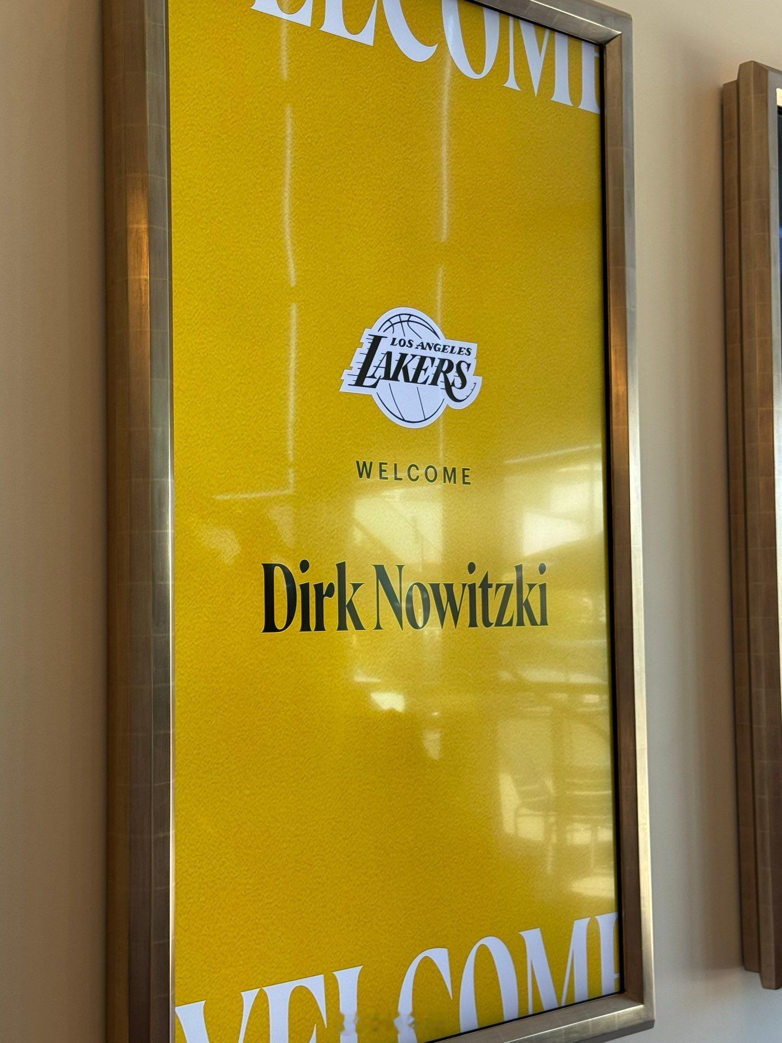湖人训练馆的电子屏打出“欢迎德克来访”。