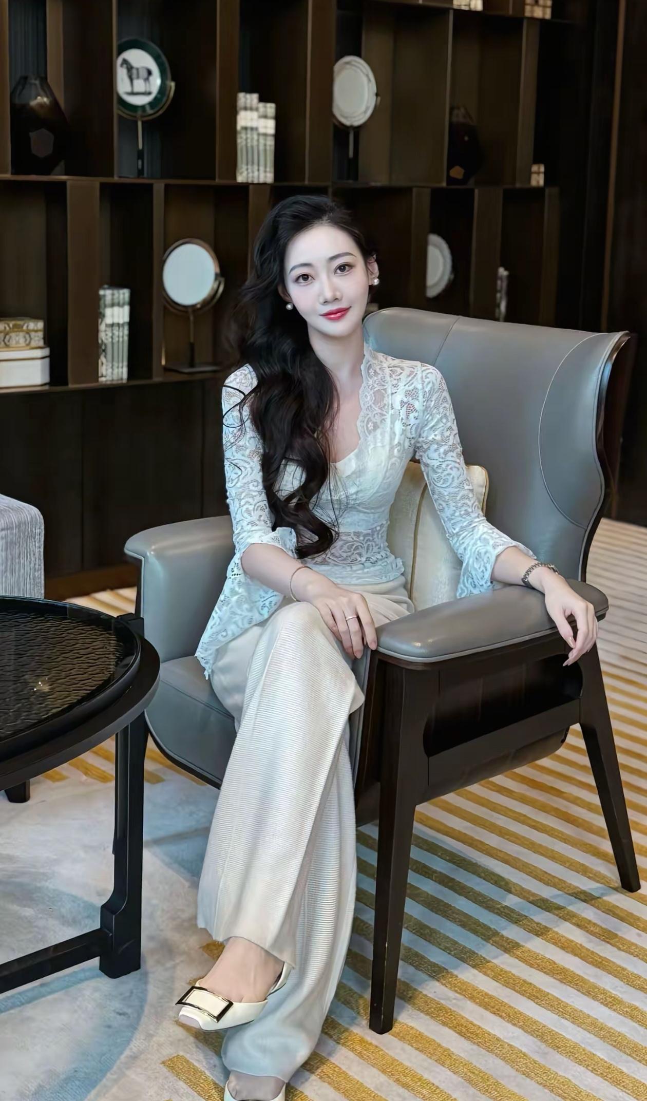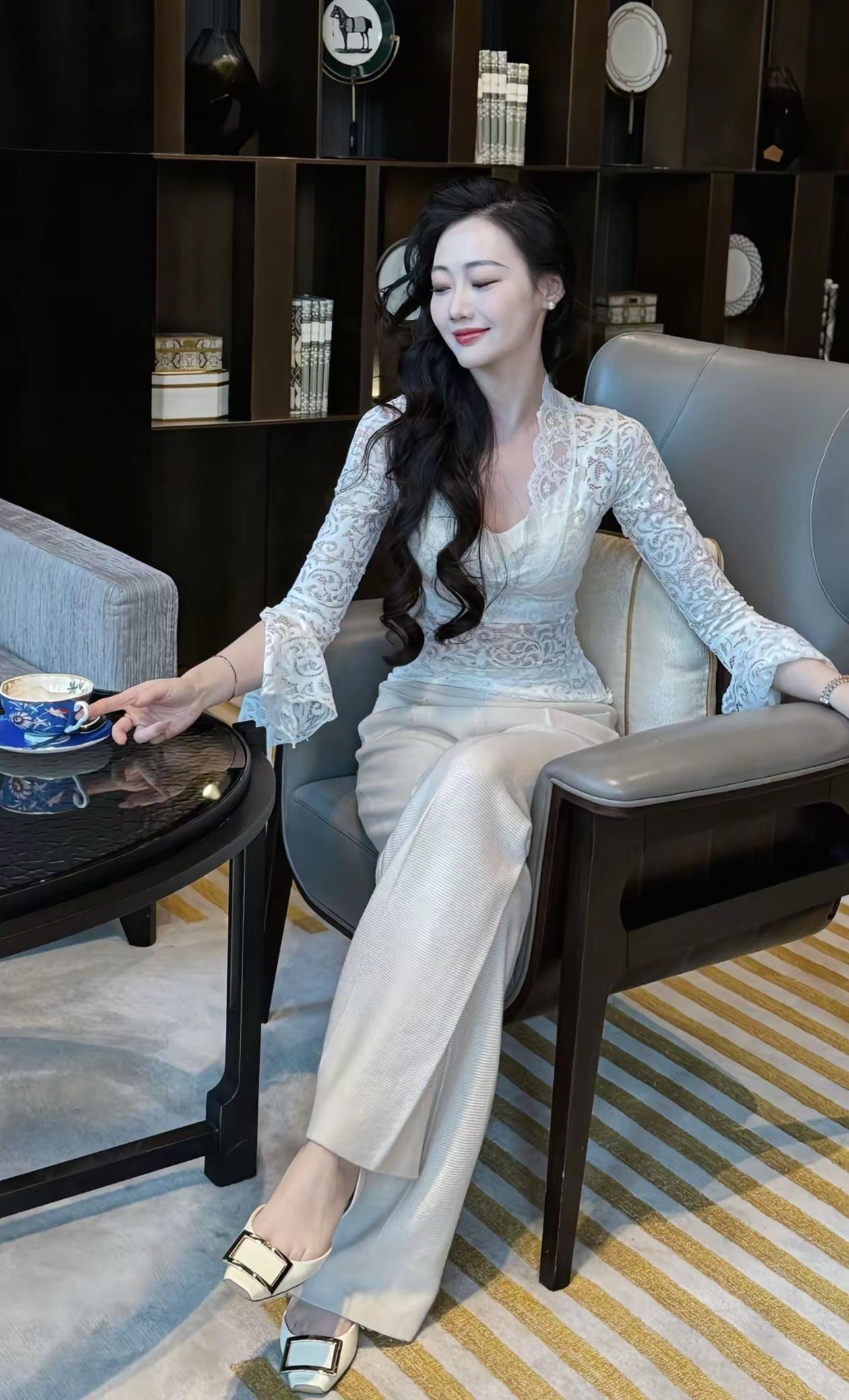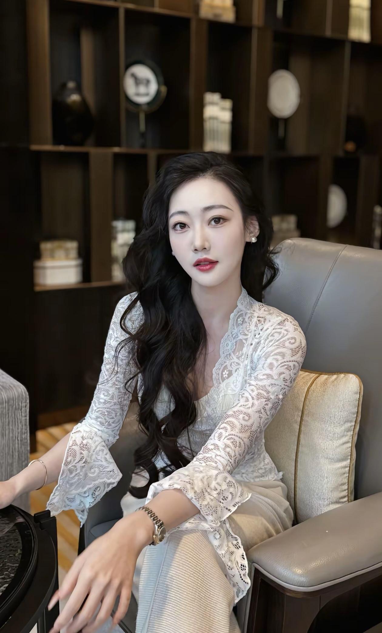 优雅气质,复古蕾丝连衣裙,咖啡馆里的静谧时光