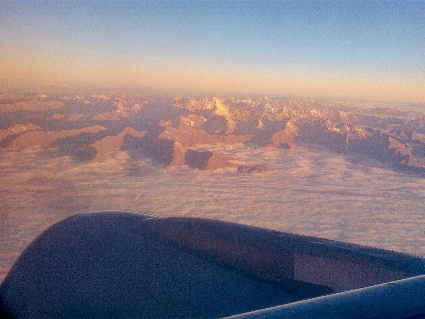 飞往林芝途中,在万米高空上拍到的日照金山,要不说西藏的每一座山峰都有神灵,凡山皆
