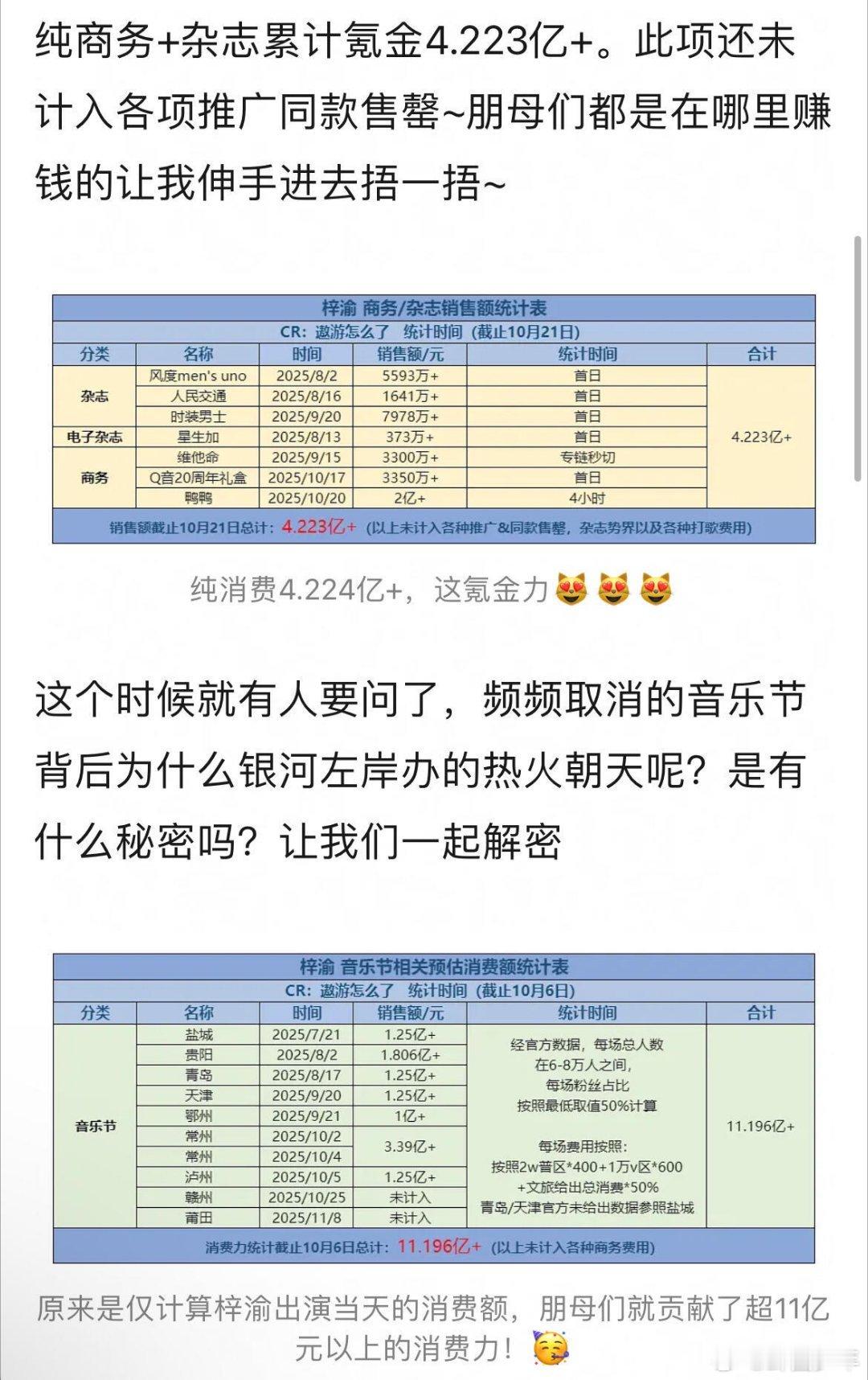 梓渝音乐节带动消费31亿 从舞台光芒到经济热度,梓渝的影响力从不止步!31亿的消费数据,是粉丝购买力的硬核展现,更是偶像与粉丝共同创造的“双赢奇迹”,10.25赣州音乐节,已经开始期待这份热度再升级!