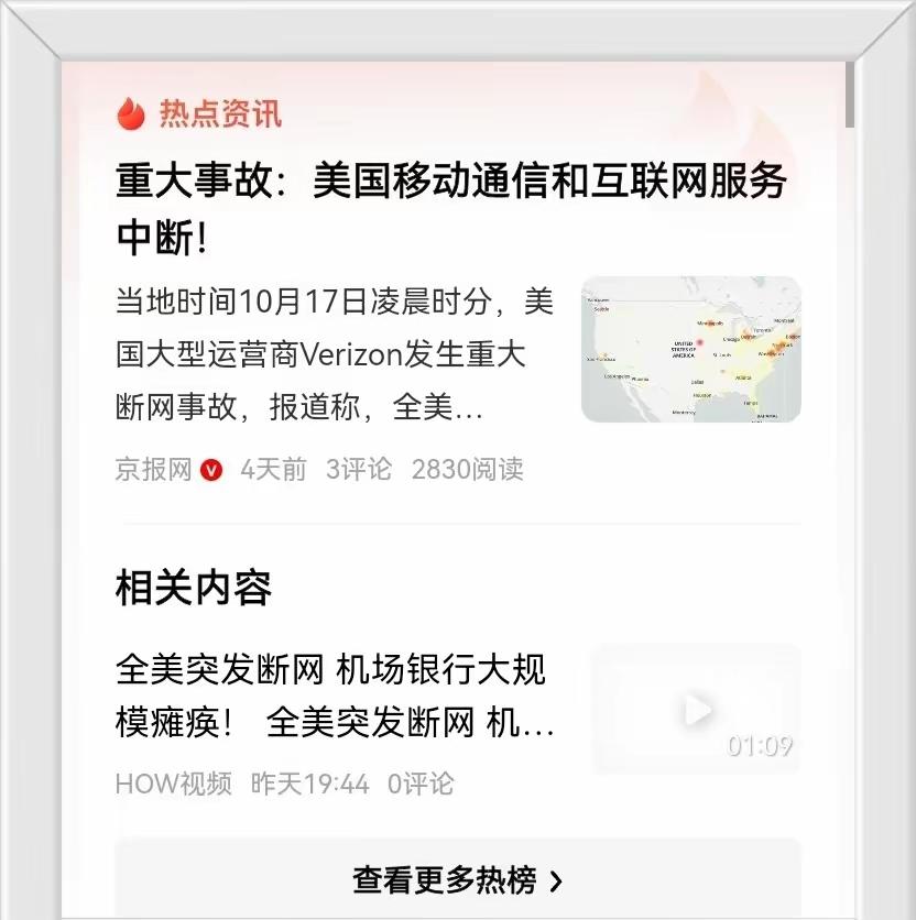 大面积断网 报应快快的,损失大大的 平时总在网络上横行霸道 到处放病毒搞攻击 以为自己是天下第一 没人能治得了 结果自家云服务一崩 整个国家直接乱套 购物平台打不开 航班一架架延误 银行系统停摆 手机电脑全成摆设 十五个小时的混乱 让所谓的科技强国现了原形 以前总嘲笑别人网络脆弱 如今自己的漏洞比筛子还多 一边到处挥舞网络大棒 一边连自家基础设施都护不住 这哪里是超级大国 分明是外强中干的纸老虎 天道好轮回从来不是空话 你怎么对别人 终有一天会反噬到自己身上 这样的教训 能让美国收起嚣张气焰吗