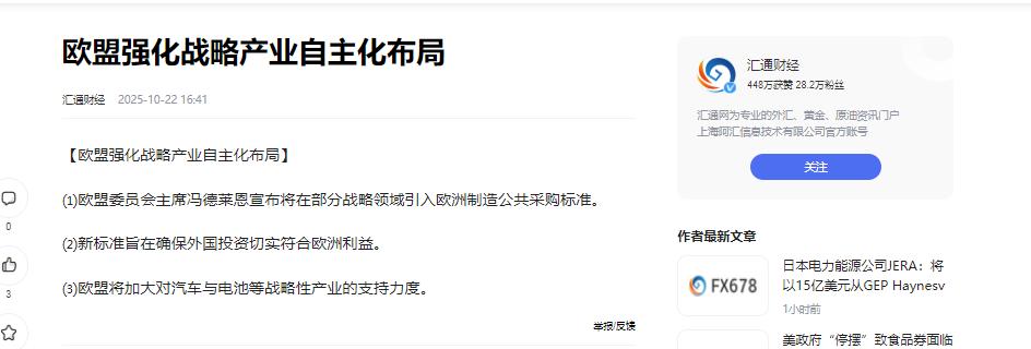 欧盟委员会主席冯德莱恩放出重磅消息,宣布欧盟准备在一些战略领域引入“欧洲制造”的公共采购标准,并且要下血本加大对汽车和电池这些命脉产业的扶持。这无疑是欧盟在“战略自主”道路上迈出的又一关键步。 冯德莱恩这声宣布太关键了!这哪是简单的政策调整,分明是欧盟攥紧拳头要在汽车、电池这些要命的产业上 “自己当家作主”,这步走得太及时也太必要了。 先说说 “欧洲制造” 的公共采购标准到底是啥意思,说白了就是政府花钱买东西,得优先挑欧洲自己造的,尤其是那些关系到产业命脉的领域。 就像之前欧盟搞光伏新政,明确要求 30% 的可再生能源项目必须用欧洲造的组件,现在这招要用到汽车和电池上了。 你想啊,政府的采购量多大啊,比如各地的公务车、公共充电站的电池,一旦都认准 “欧洲制造”,本土企业立马就有了稳定的订单,这不比靠零散的市场销售靠谱多了? 为啥欧盟这会儿急着干这事?说白了就是被 “卡脖子” 的滋味尝够了,再不求自主就真晚了。先说汽车这个老本行,欧洲的汽车业以前多风光啊,大众、宝马哪个不是响当当的牌子? 可现在不行了,2024 年德国的纯电动车销量直接跌了 27.4%,占比才 13.5%,反观欧盟进口的纯电车里,55% 都是中国造的,这差距看得人揪心。 更要命的是电池,电动车的心脏全靠电池,可欧盟自己的电池产能才占全球 7%,真正欧洲企业掌控的还不到 15%,上游的锂、钴这些关键材料 87% 都得靠中国供应。 以前燃油车时代,欧洲能靠本土产业链赚走 85% 以上的利润,现在电动车要是用进口电池,本土能赚到的钱直接跌到 20% 都不到,这钱流到别人口袋不说,哪天人家断供了,欧洲的汽车厂就得停工,这种风险谁扛得住? 所以这次欧盟是真下血本了,直接拿出 18 亿欧元专门砸给电池供应链,就是要建自己的电池厂、搞自己的原材料渠道。 德国更狠,光武器采购就准备了 830 亿欧元,其中 8% 才给美国,剩下的全留给欧洲本土企业,这心思多明显 —— 钱要花在自己人身上,技术要攥在自己手里。 就说瑞典的 Northvolt 电池厂,欧洲自己的龙头企业,现在正靠着政策扶持扩产能,目标是 2030 年让欧洲电池产能冲到 1200GWh,这就是要跟亚洲的电池巨头掰手腕了。 有人可能觉得这是小题大做,可看看之前的教训就明白有多重要。俄乌冲突的时候,欧洲因为依赖俄罗斯的能源差点冻肚子,后来拼了命搞可再生能源自主。 疫情那阵,连口罩、呼吸机都要靠进口,急得团团转。现在汽车和电池要是再被别人拿捏,欧洲的制造业根基就动摇了。 你看德国议会多清醒,154 个重大军购项目,就给美国两个小订单,剩下的全喂给本土军工,就是怕再被美国卡脖子 —— 之前美国的 F-35 战斗机据说能远程关机,这种受制于人的滋味谁愿意受? 公共采购的威力其实早就有例子了,爱尔兰都柏林搞排水系统采购,直接把技术专利留给本土企业,还规定要是企业 3 年不商用,权利就收回来继续扶持别的本土公司。 欧盟搞区块链项目也是,明确要求 70% 的活儿必须在欧洲干,安全组件得 100% 本土造,还不准随便把技术卖给第三国。现在这套玩法用到汽车和电池上,效果肯定差不了 —— 政府订单拉着,资金扶着,本土企业就能放开手脚扩产能、搞研发。 可能有人问,中国车企在欧洲销量不是下滑了吗?比亚迪在德国的注册量跌了 30%,是不是欧洲不用急? 可别被表面数据骗了,2024 年西欧市场里,中国品牌份额虽然才 3.3%,但欧盟进口纯电车一半以上来自中国,这说明欧洲市场对电动车的需求还在,只是之前靠进口,现在欧盟要把这块需求变成自己的产业动力。 就像光伏产业,以前欧盟 90% 的组件靠进口,现在搞本土化才没多久,本土企业就慢慢起来了,汽车和电池走这条路肯定没错。 说到底,冯德莱恩这步棋就是要把产业的 “根” 扎在欧洲本土。汽车是欧洲的老牌支柱,电池是未来的核心,这两个领域自主了,不仅能保住无数工人的饭碗,还能在全球竞争里有话语权。 以前欧洲总被美国、亚洲的企业牵着鼻子走,现在靠公共采购给本土企业 “输血”,再砸钱建产能,就是要重新把主动权抢回来。 这哪是简单的产业扶持,这是欧洲在为自己的未来铺路,战略自主不是喊口号,就是要靠这样实打实的动作干出来,这步走得太对了!