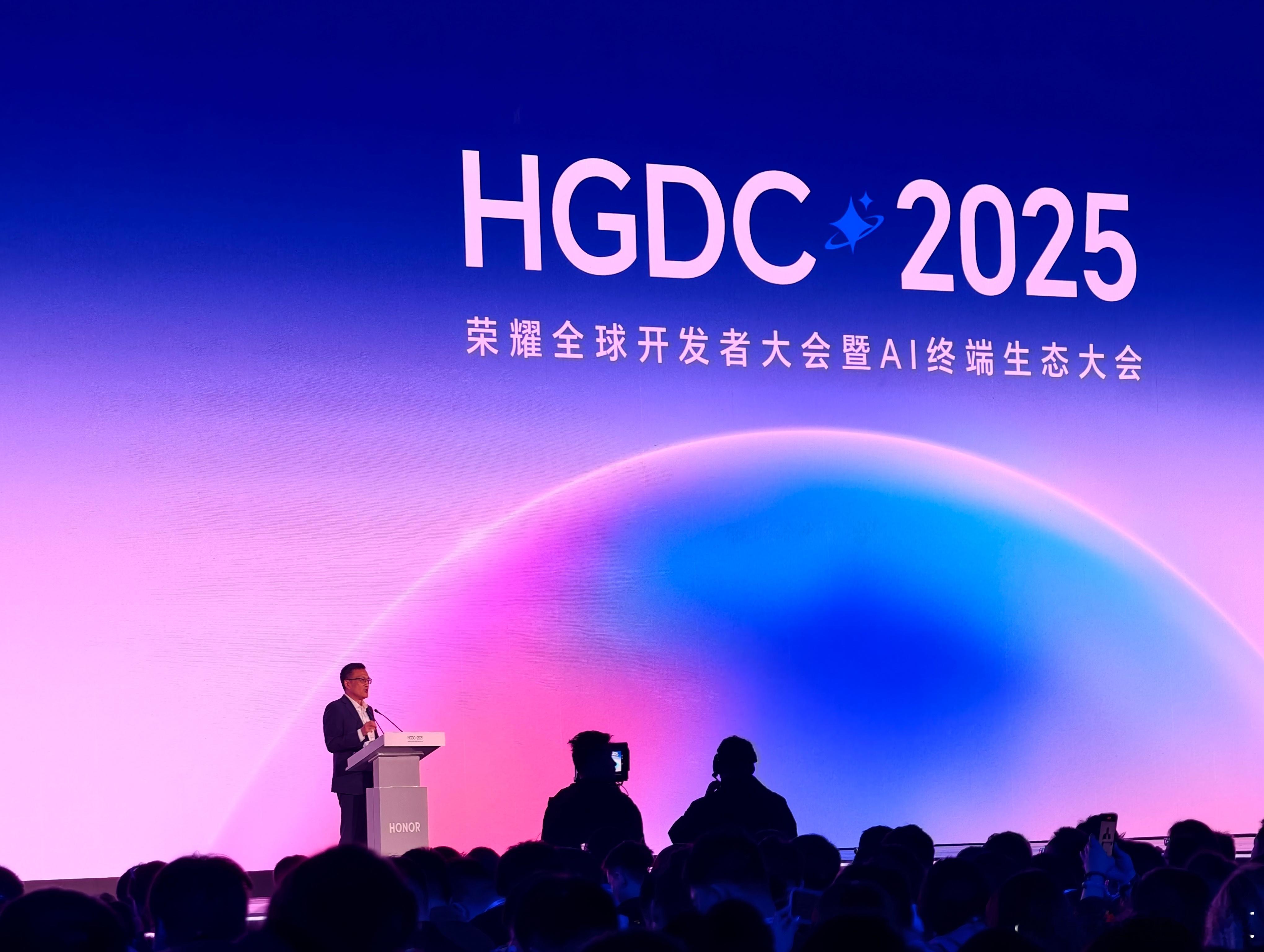 打卡荣耀终端AI生态大会/2025荣耀开发者大会,现在是荣耀产品线总裁方飞致辞,