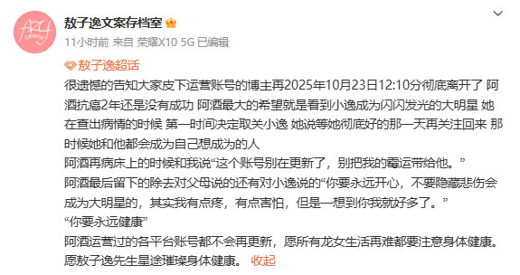 敖子逸我们终究还会再见 敖子逸上线悼念患病离世的粉丝:很遗憾以这样的方式 谢谢你一直以来的支持和喜欢 也很遗憾没办法亲口跟你说一声谢谢了 一路走好[蜡烛]我们终究还会再见