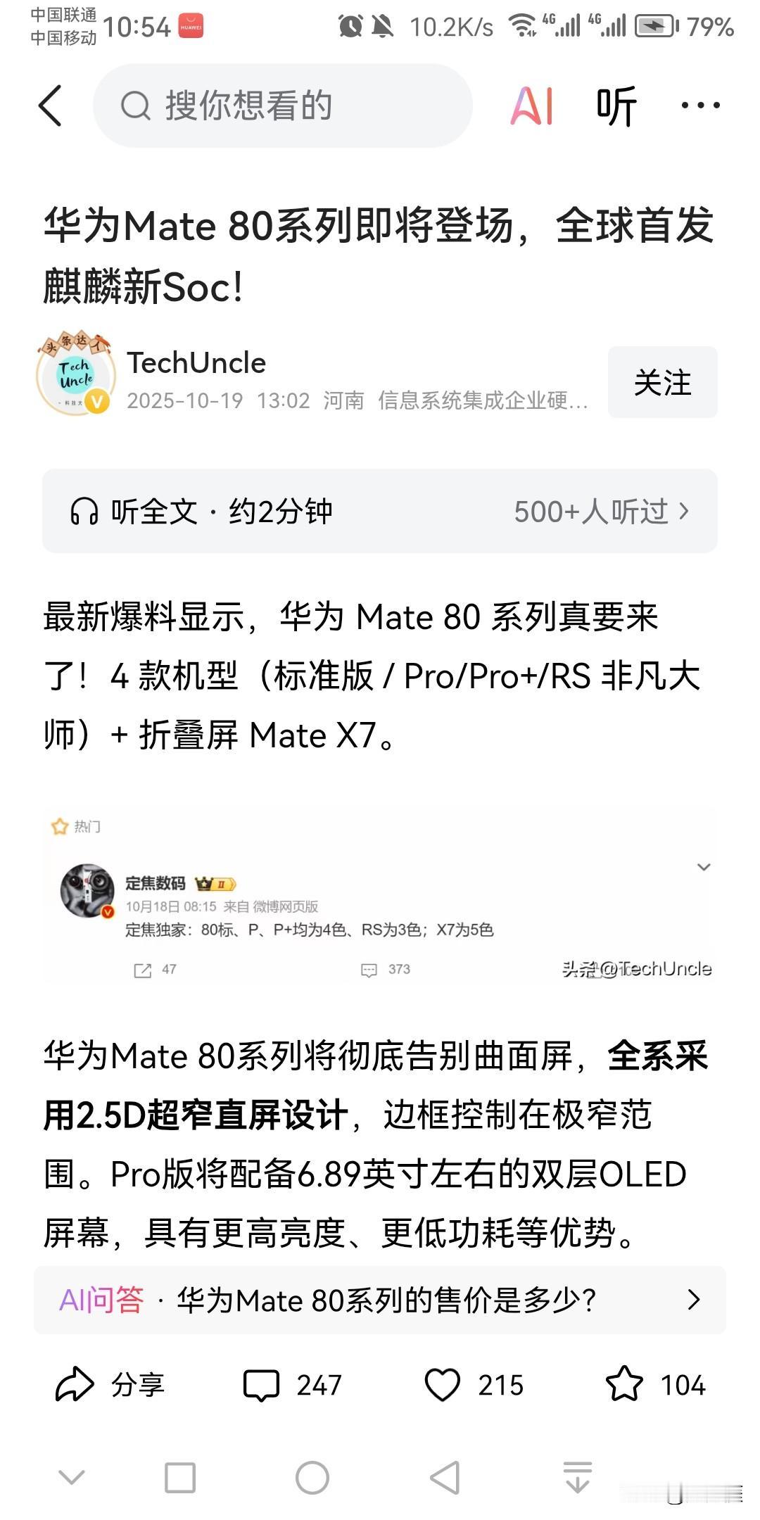 华为Mate80系列已经备案,11月即将震撼上市,这款旗舰将搭载华为最强芯片海思麒麟9030芯片和最新鸿蒙系统6.0版本,将会是年度最亮眼的旗舰手机。 价格方面,标准版预计5499元起,pro版预计6499元起,pro+版预计7999元起。 大家准备好冲这款旗舰机了吗?