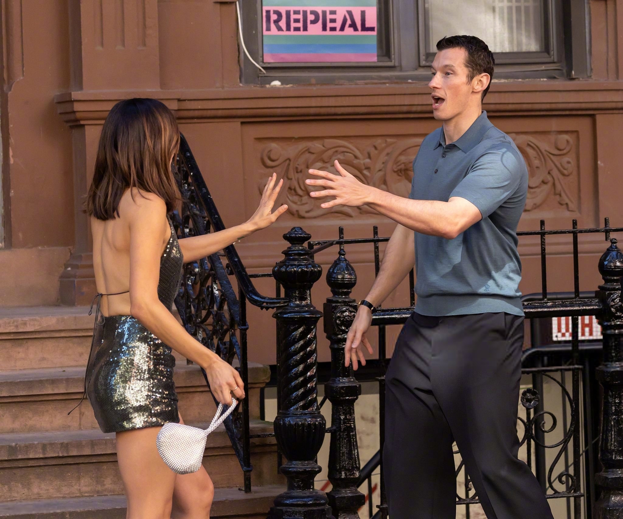 莫妮卡·巴巴罗、卡勒姆·特纳拍摄新片《只有一晚》现场。