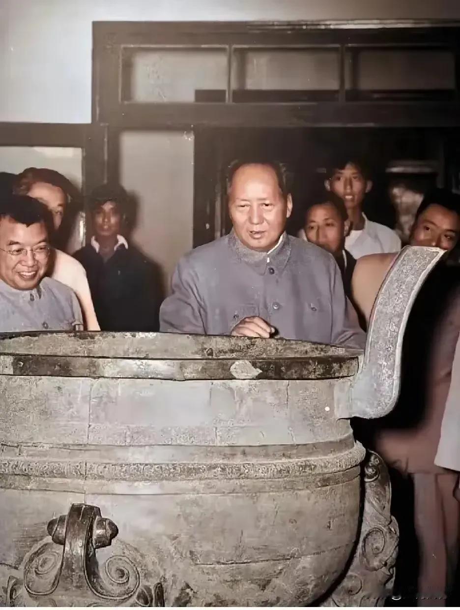 老人家站在这个大鼎前,看的非常认真,这个大鼎感觉不像是司母戊大方鼎,我记忆当中的司母戊大方鼎是方的,而这个大鼎是圆的,感觉这个大鼎也是非常大的,从底部到这个大鼎耳朵的高度,至少得有一米六以上,感觉比司母戊大方鼎还要高,至于重量哪个更重一些,这个就有点看不出来了,不知道这个鼎叫什么名字,现在在哪个博物馆收藏,有机会真想看一看!