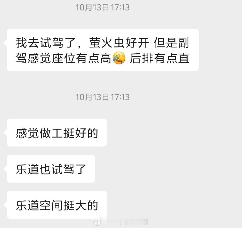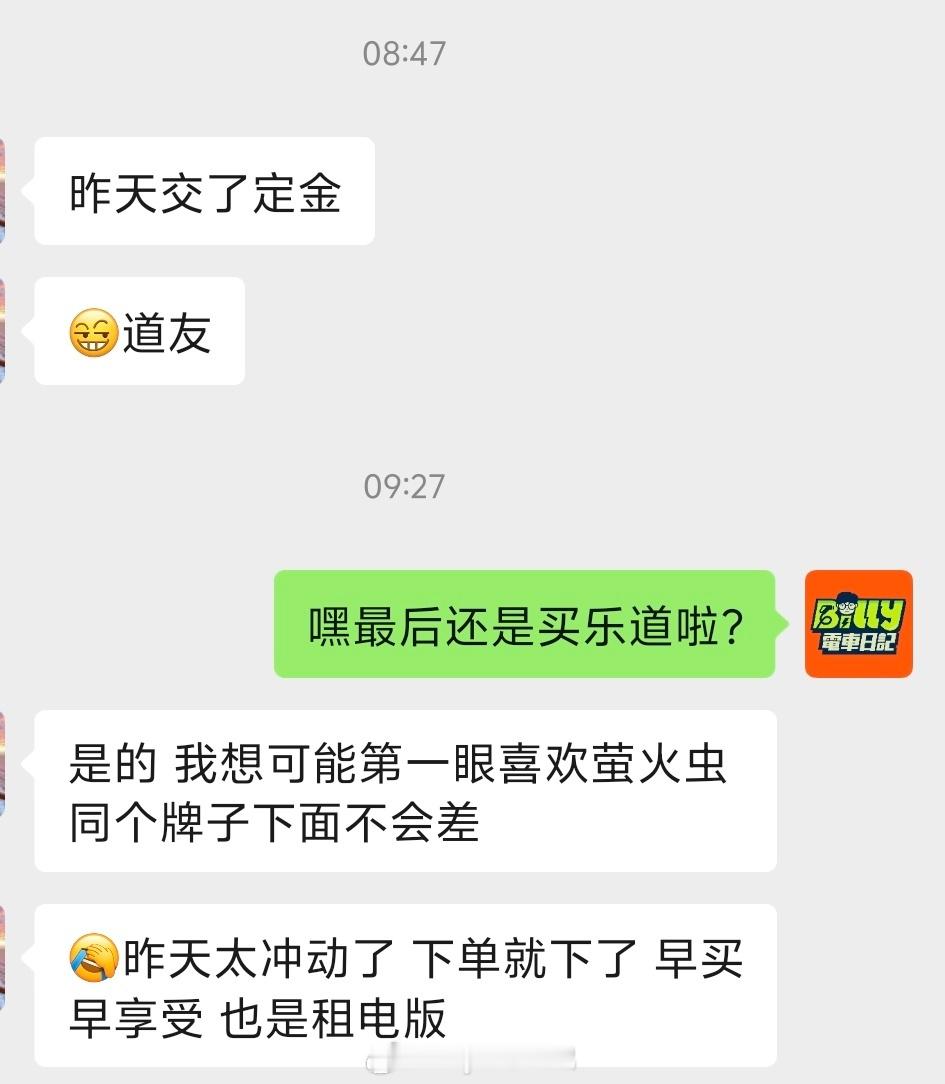 她本来是计划买萤火虫,后来试驾完她儿子觉得还是要大一点的车,我就给她推荐了几款,最后选择了乐道L60,打动她的最大因素就是补能方便,其他的比如智能化、空间、舒适性这些,她觉得我推荐的那几款都差不多,综合对比下来觉得乐道L60更出色,昨天就下单了。