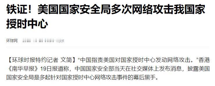 国家安全机关披露了:美国国家安全局对我国授时中心实施重大网络攻击活动。只能说美国用心还是太歹毒了,一旦成功攻击我国授时中心,中国电网将瘫痪,全国交通运输或陷入瘫痪! 先说说授时中心到底是干啥的,咱日常用的时间,看着是手机上简单的数字,背后全靠国家授时中心发出来的标准时间信号撑着。不管是电网输电时的频率调控,还是高铁调度系统里的车次衔接,甚至银行转账时的精准时间戳,全得靠这看不见的“时间基准”托底。 可以说,位于西安的国家授时中心可不只是个“大闹钟”,它手里握着国内第一、世界第三规模的守时原子钟组,能做到“6000万年不差1秒”,还靠着光纤、长波、北斗三条链路,把百皮秒级精度的时间信号送到全国各行各业,小到手机闹钟,大到航天发射,全离不开它。 而美国国安局显然把这根“时间生命线”摸得门儿清,不然也不会花两年多时间搞渗透,从2022年3月开始,他们先拿境外品牌手机的漏洞下手,悄悄控制了授时中心工作人员的终端,把敏感资料偷了个遍;到2023年又用偷来的登录凭证摸进内网,把系统布局摸得一清二楚。 最后干脆在2023年8月到2024年6月摆开架势,动用42款特种网攻武器发起高烈度攻击,目标直插核心的高精度地基授时系统,摆明了想预置瘫痪能力,更鸡贼的是他们专挑北京时间深夜动手,还绕到欧洲、亚洲的服务器当跳板,伪造数字证书躲杀毒软件,打完还擦除痕迹,一套操作下来,比谍战片里的套路还细致,这哪是网络攻击,分明是奔着断我们基础设施命脉来的。 真要是让他们得手了,后果不堪设想,电网这东西最讲究步调一致,发电机和输电网的频率得靠毫秒级授时同步,一旦时间信号乱了,保护装置就可能误判动作,引发连锁跳闸,局部停电分分钟变成区域性大停电,到时候别说开空调做饭,连医院的急救设备都可能掉链子。 交通系统更是“差一秒都不行”,高铁调度依赖微秒级时间差保证安全间距,机场的航班起降排序全靠精确时间戳,要是授时信号中断,高铁可能撞车,航班得集体停飞,全国交通网瞬间变成死棋。 更要命的是,金融交易的订单撮合、5G基站的信号协同,甚至导弹的精准制导,全得靠纳秒级授时撑着,时间一乱,股市可能崩盘,通信得断网,连国防安全都得受影响,这损失根本没法算。 可见美国真的是用心险恶,一边在国际上制裁中国企业、起诉中国公民,装出一副网络卫道士的样子;一边又指使国安局在全球到处搞窃听攻击,连菲律宾、日本这些地方都成了他们的网攻跳板,真是把贼喊捉贼玩到了极致。 说白了,他们就是见不得中国把“时间主权”攥在自己手里,这些年我们靠着自主研发的时间测量系统,在国际标准时间测算里的份额从5.66%涨到19.51%,从以前依赖别人到现在能自己定标准,这才戳了美国的痛处,毕竟他们习惯了用技术霸权卡别人脖子,哪容得下别人挺直腰杆。 好在国家安全机关早早就盯上了这伙人,见招拆招把攻击链路全斩断了,现在授时中心不仅升级了防护,还搞了“长波+光纤+北斗”的三重备份,给终端装了固件白名单,内网访问控制严到没缝隙,就算再想来偷鸡摸狗,门儿都没有! 这事儿也给所有人提了个醒,原来我们手机上那串简单的时间数字,背后是这么激烈的攻防战,那些深夜里盯着日志找异常的工程师,守着的何止是“北京时间”,更是我们过日子的安稳劲儿。 说到底,美国这波操作纯属搬起石头砸自己的脚,想靠搞垮授时中心瘫痪中国基础设施,既暴露了他们的心虚,也让全世界看清了谁才是真正的黑客帝国,现在我们的授时系统越防越牢,国际话语权越来越重,他们再怎么耍阴招也没用。 毕竟,靠偷靠抢的霸权逻辑,早就跟不上这个讲究自主可控的时代了,真有那功夫搞网攻,不如回去好好管管自己国内的网络安全烂摊子!