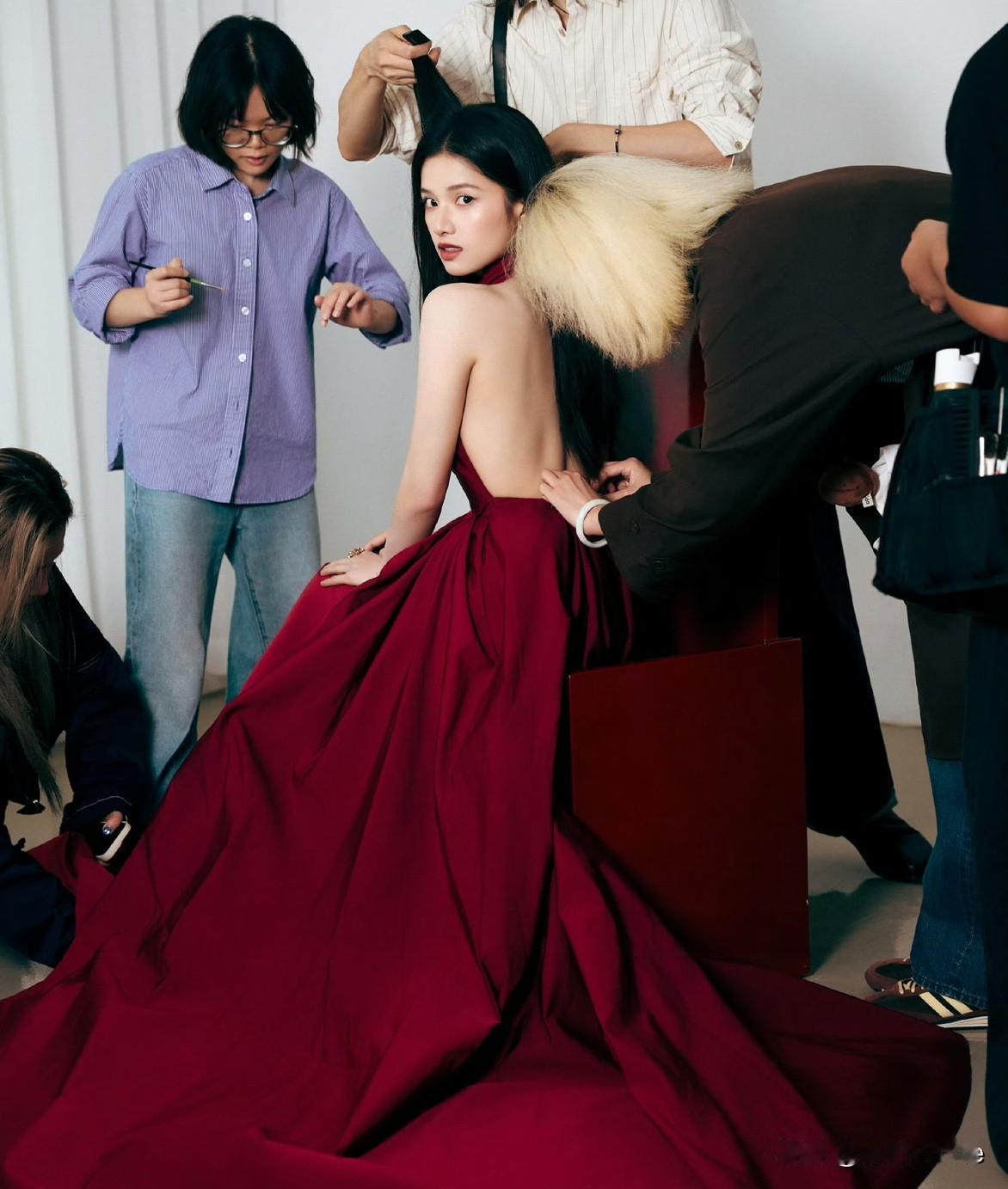 10月23日,张婧仪分享试妆出发图,让我想到不久前迪丽热巴站着试妆场景! 难怪都喊张婧仪公主,原来艺人是可以坐着试妆的!相比海外,内娱给予艺人的待遇以及亲切感会好很多,他们会以艺人为主,而不是只把艺人当做他们服装行走的衣架! 张婧仪这套酒红露背大裙摆礼服一出图就备受好评,迪丽热巴那套蓝色重工套装之前备受争议,大多数人都觉得不太适合迪丽热巴,一是款式老气,二是一点也不修身 想到后面鞋跟走到一半断裂,迪丽热巴正常活动全程踮脚,就有点生气!可惜这次二十周年时尚庆典迪丽热巴没有参加!