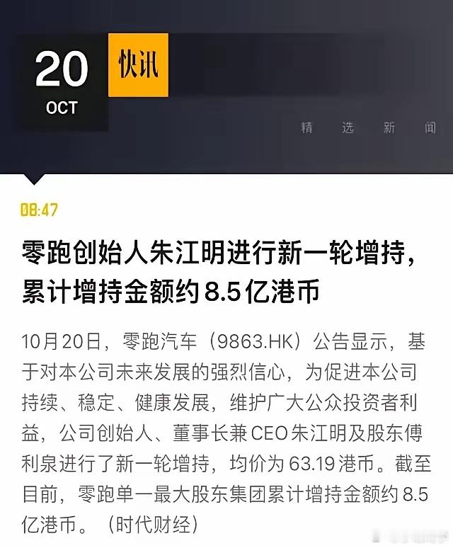 零跑的老板自掏腰包增持公司股票,这是对公司业务自信的表现。