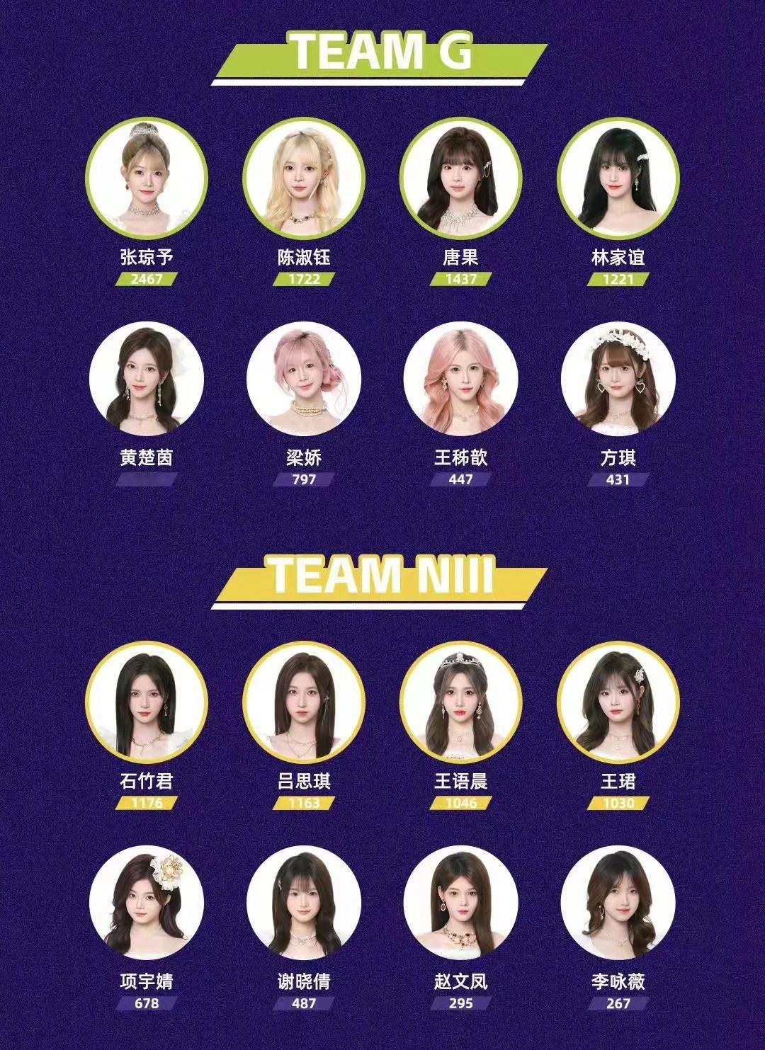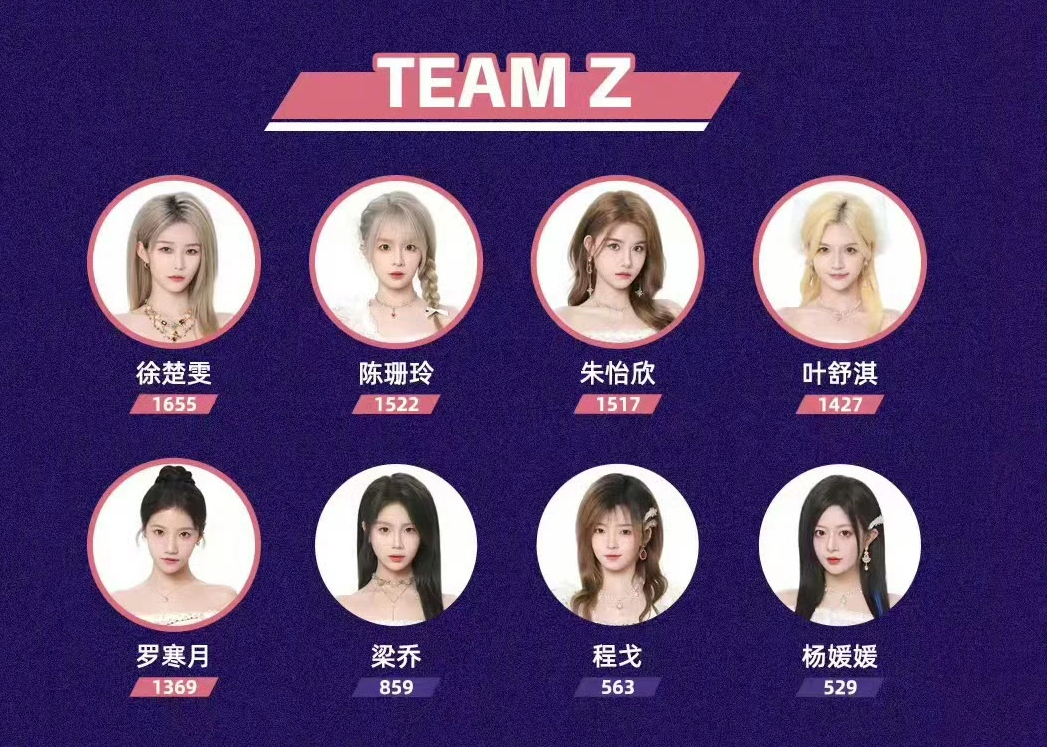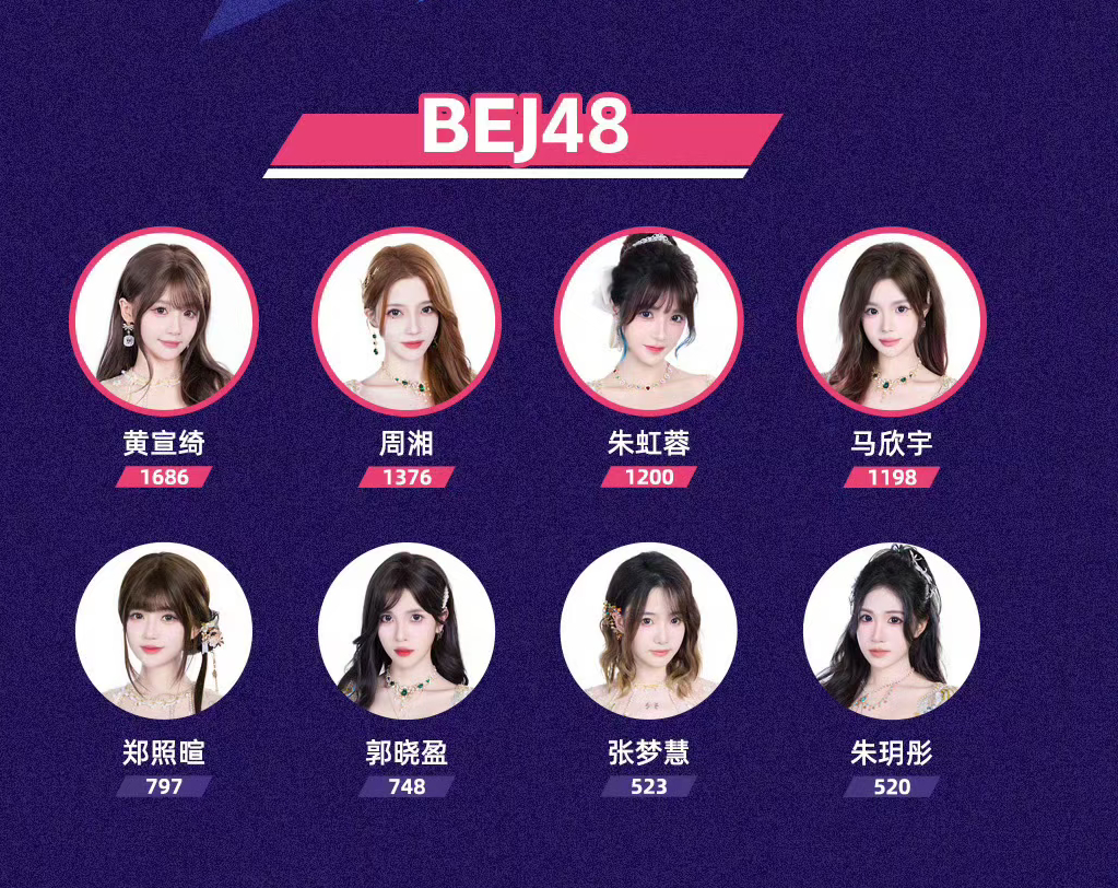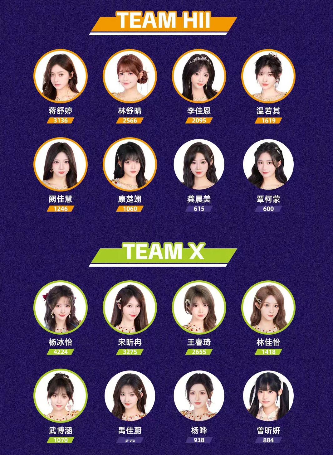 徐楚雯(1655),陈珊玲(1522),朱怡欣(1517),叶舒淇(1427),罗寒月(1369),梁乔(859),程戈(563),杨媛媛(529)