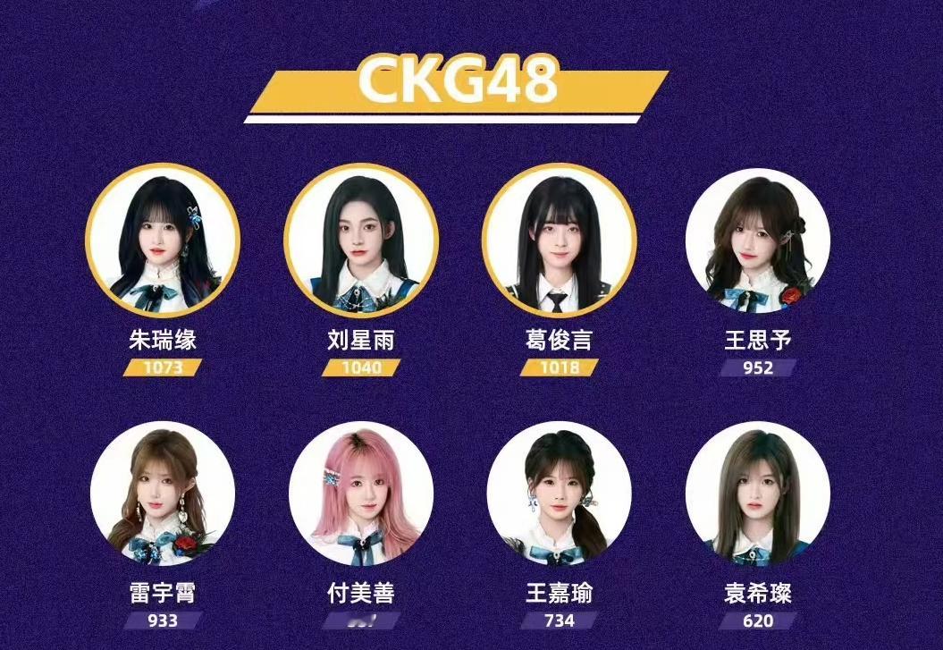 朱瑞缘(1073),刘星雨(1040),葛俊言(1018),王思予(952),雷宇霄(933),付美善(887),王嘉瑜(734),袁希璨(620)