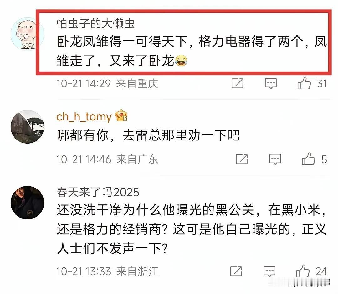 格力电器的朱磊绝不是一般人 微博引战不是他一时兴起 用“不群”的称呼其实是非常有针对性 格力电器作为家电行业龙头 最近几年一直没有踩到正确的赛道 之前百万年薪找来王自如做渠道改革其实也是想踩到网红流量的风口。 可惜没有成功,今年上半年财报显示格力的营收是同比下降的,作为市场部一哥这是朱磊的重要考核指标。 其原因在于格力经销商吃了很多国补的订单,压货很大,同时格力一直在重点发展企业订制订单。 这些项目占压资金大,回款慢,影响资金流动性,现金流量受到影响。 所以会影响到股东的分红,而同赛道的美的和苏泊尔都在海外赛道开辟上做的不错,小家电九阳也表现突出。 可以说都有亮点。 董明珠很聪明他早就看到小米雷军是家电消费者心中的超级大IP,一直想要分到小米营销的流量。 作为企业家来说,她很清楚,企业产品能够直接面对消费者,减少渠道依赖是最硬的底气。 可惜了网络流量不是谁都能撬动的。 王自如的推出,就是一招好棋, 但是被进退自如带偏吃瓜了。 朱磊市场业绩上没有亮点,但是他清楚董总看重什么,格力未来的发力点在哪里,作为市场部一哥,亲自下场就是顺理成章身先士卒的表现了。 加上最近小米正好碰到舆论反噬,他站出来再好不过了。