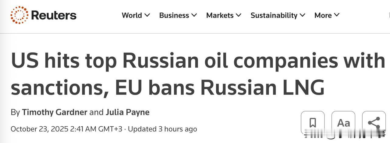🇪🇺🇷🇺据路透社报道,欧盟已批准了对俄罗斯的第19轮制裁措施。 ▪️该措施包括禁止液化天然气供应,将分两个阶段生效:短期合同将在六个月后到期,长期合同则从2027年1月1日起生效。 ▪️对俄罗斯外交官的旅行实施新限制;制裁名单中新增117艘船只;哈萨克斯坦和白俄罗斯的银行被制裁;四家与中国石油工业相关的公司也被列入制裁名单。 欧盟法令 欧盟天然气禁令 制裁对俄罗斯 俄罗斯禁令 美国制裁欧盟 欧盟天然气供应