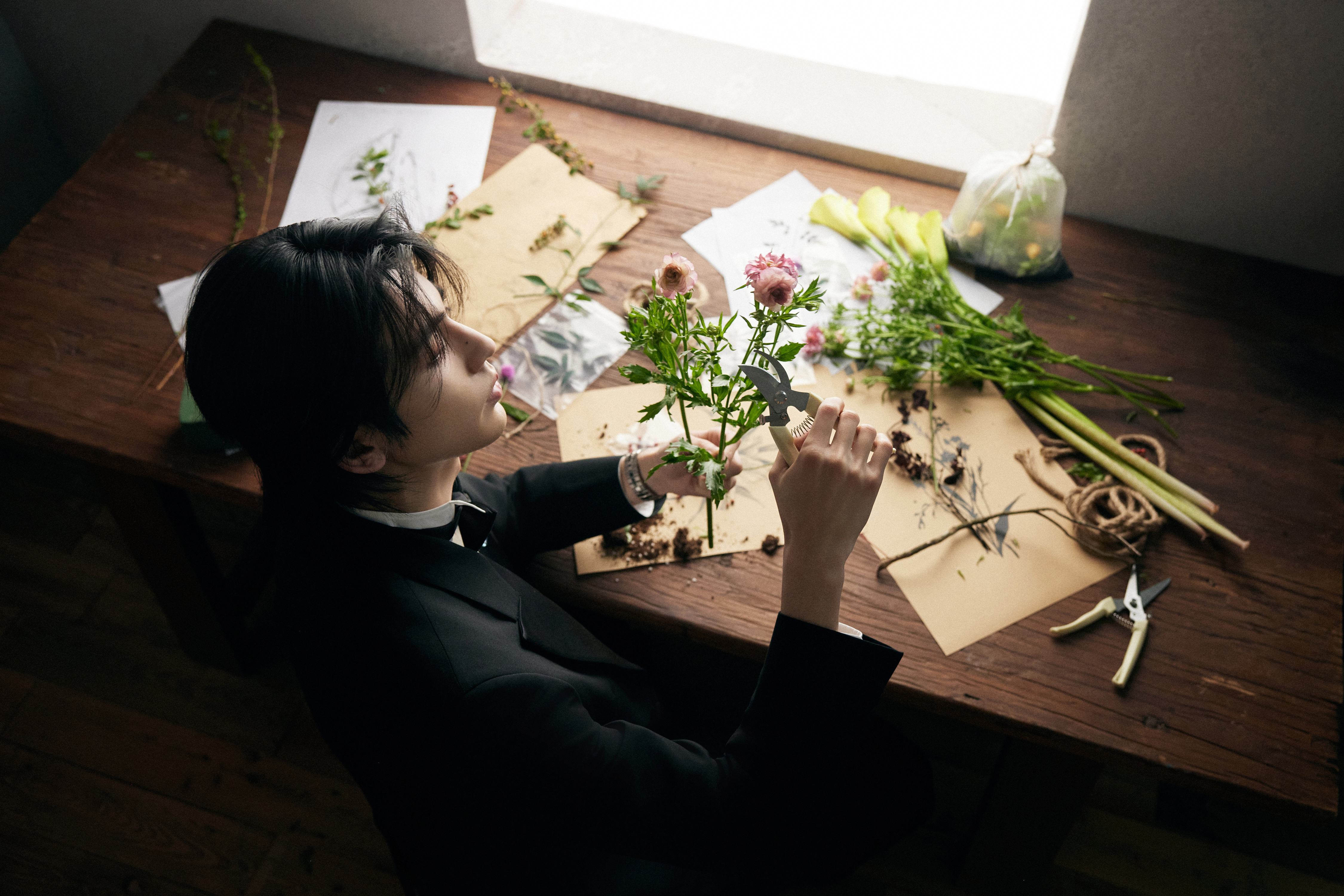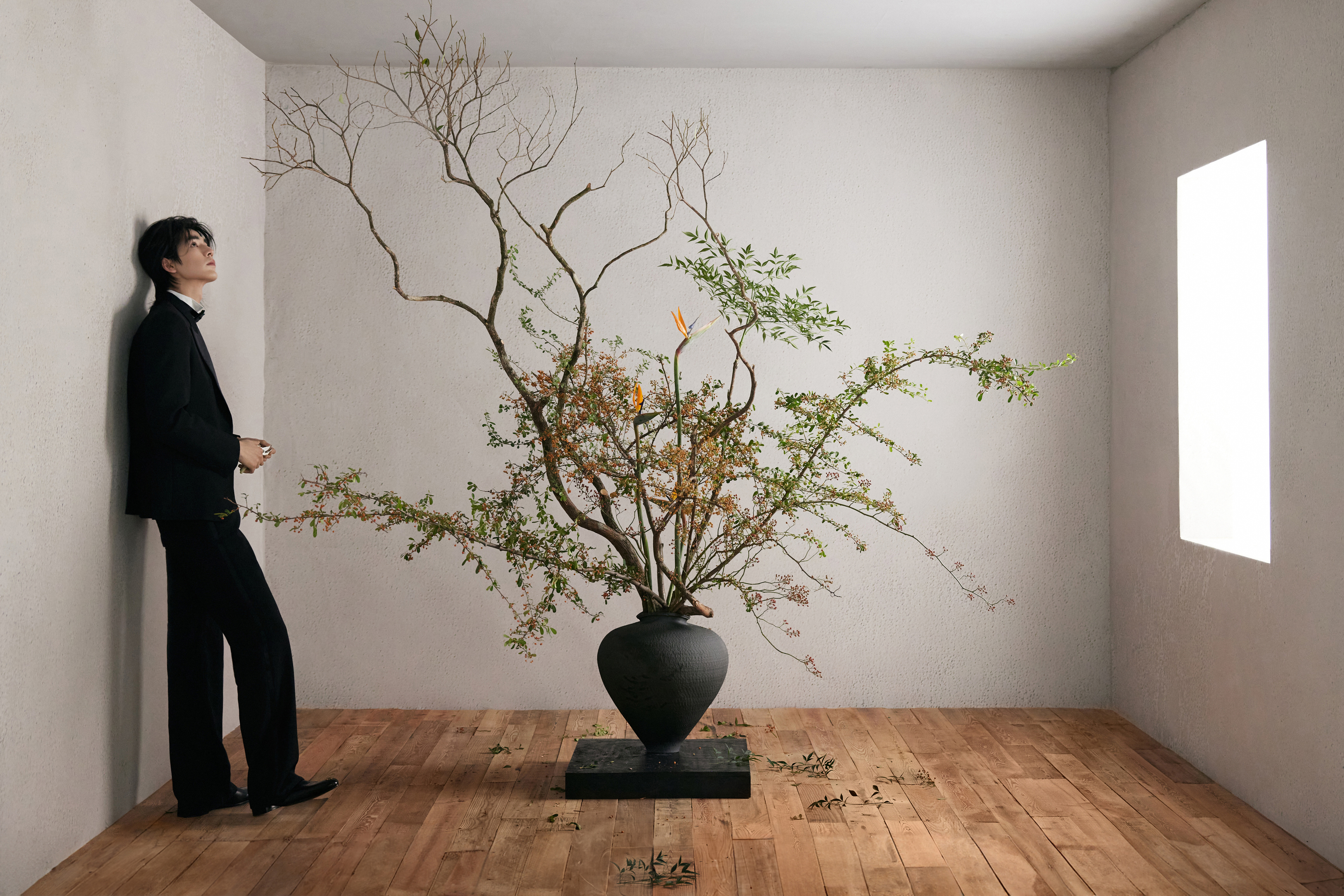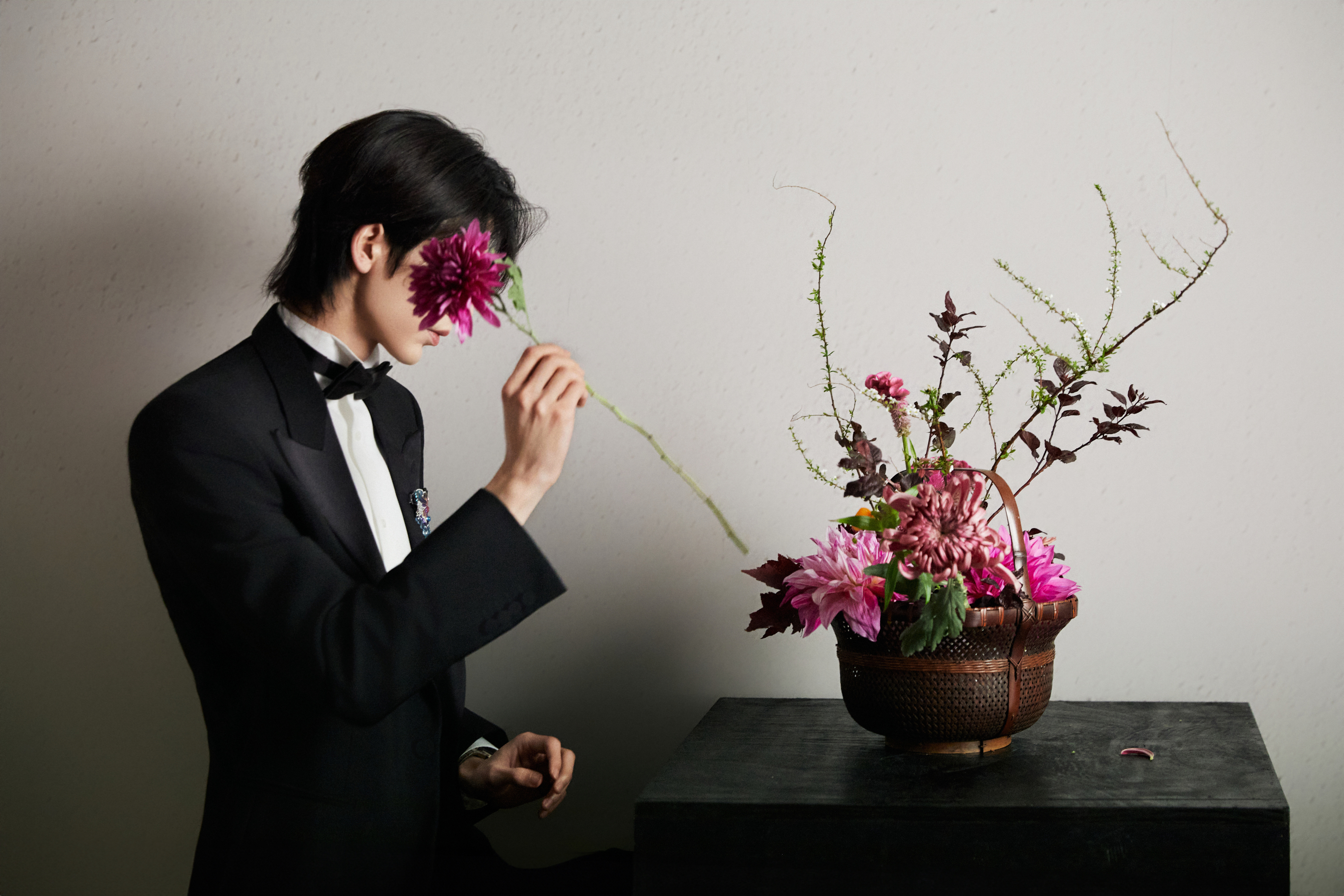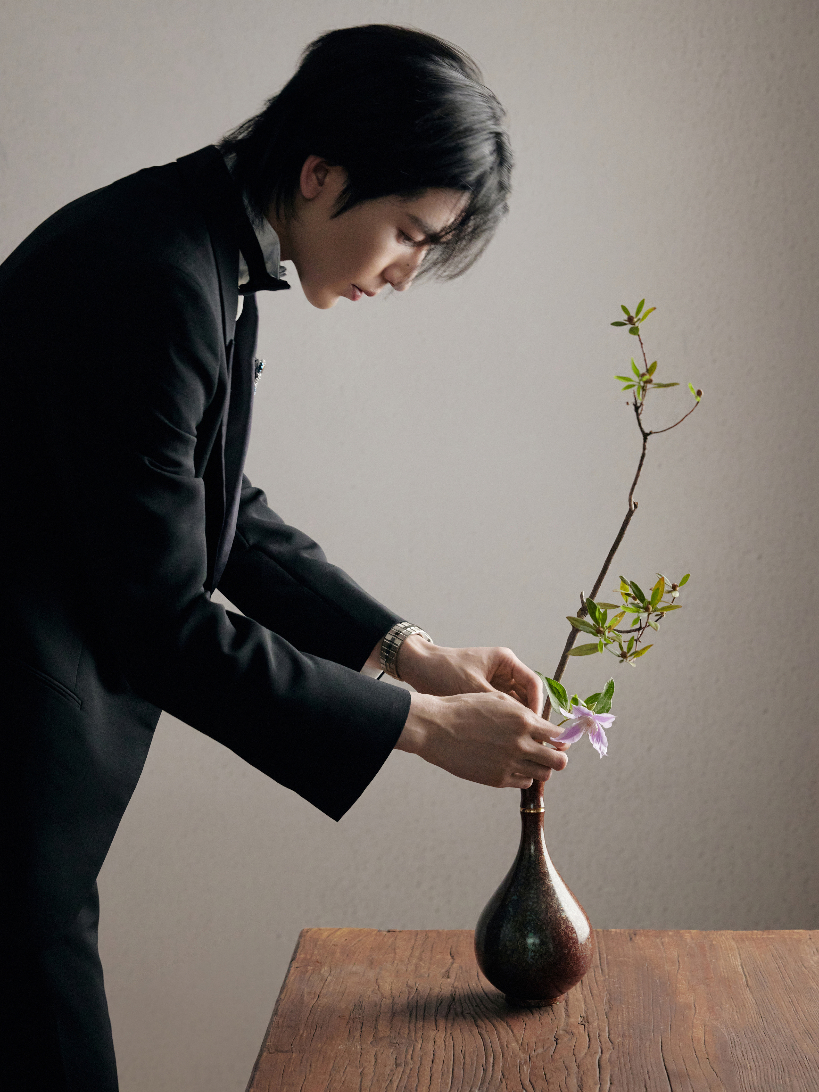 中式插花的雅致意境之下化身贵公子登场 ,GUCCI by Demna 2026 春夏系列黑西装以一枚闪耀的 Chopard 高级珠宝蝴蝶胸针及彩钻腕表点缀 ,双奢加持之下的精彩一览 ,矜贵不凡 、熠熠生辉 🦋💐✨