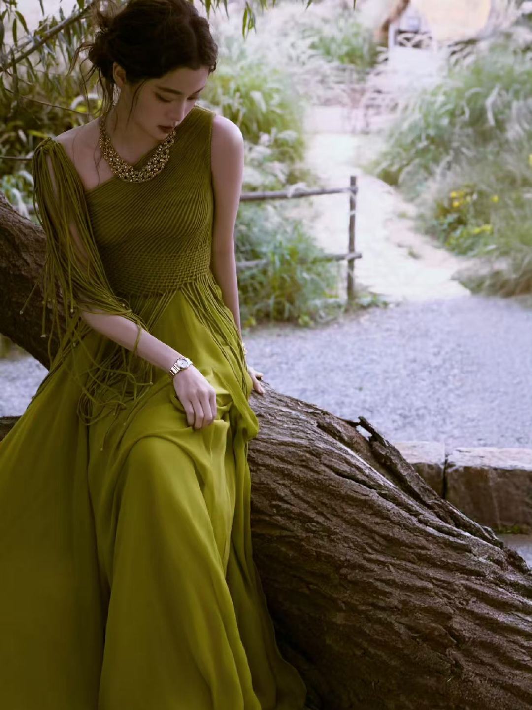 欧阳娜娜绿裙高定欧阳娜娜斜肩高定裙 欧阳娜娜绿裙高定