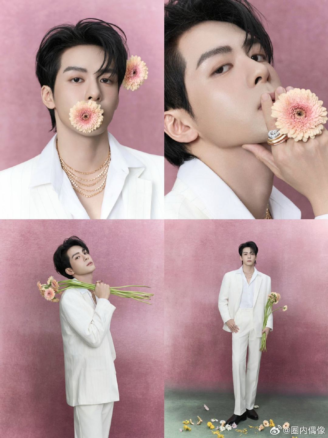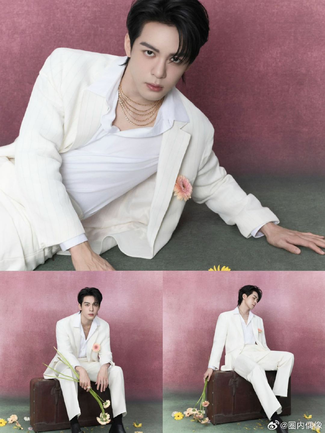 曾舜晞别摘花了快出发吧曾舜晞VOGUE盛典首套造型超绝!白色西装配鲜花,满满白马王子感,出发图还玩花开富贵梗,更预告另一套,快别摘花,速去红毯!