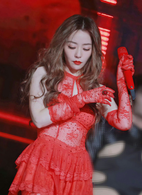 张靓颖的舞台红色裙装,超不错的,很可以!