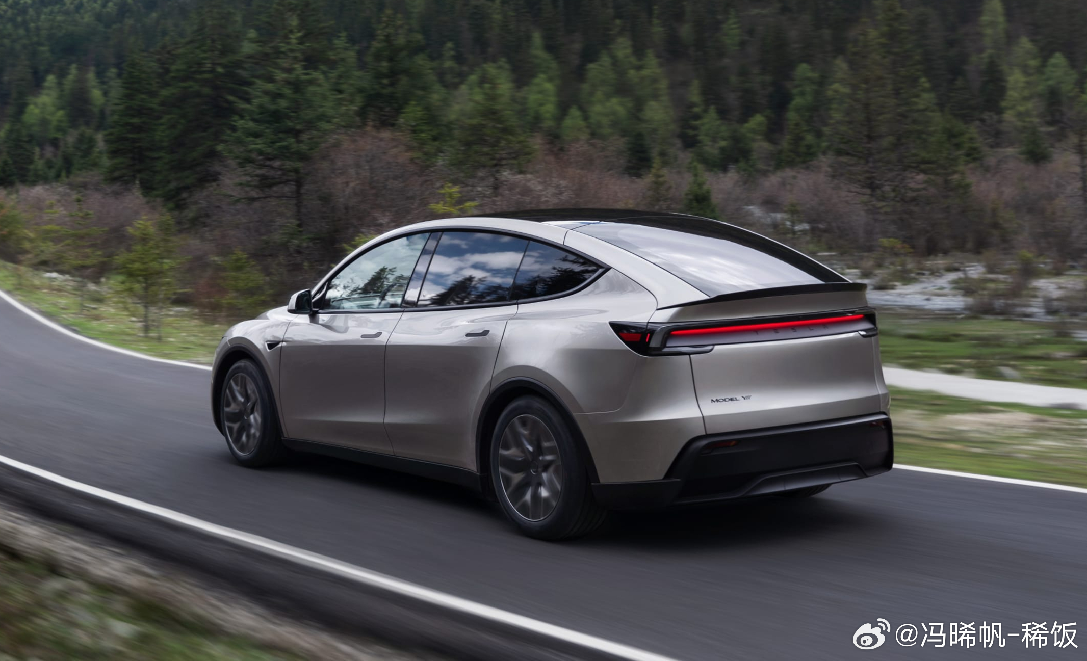 直到有天在路上跟着一台 Model Y 屁股走了一段路,便有点理解了:[震惊]远处看过去会有Model X 的影子在里面,比普通版的 Y要霸气不少。