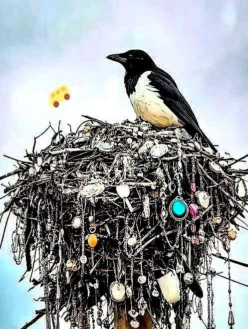 北京东三环某小区最近被一只喜鹊抢了热搜,谁能想到电线杆上那个本该柴草乱堆的鸟窝,愣是被它捯饬成了“迷你珠宝柜”,项链、耳钉、亮片挂得满满当当,路过的人抬头一看全懵了:这怕不是哪家首饰盒被鸟给“偷”了吧? 拍视频的邻居跟我吐槽,这半年最少见这喜鹊叼过十几次亮闪闪的玩意儿,还专挑下午大家晒衣服的点儿出动,跟算好了时间似的。 其实早有研究证明,喜鹊就迷金属光泽这口,英国纽卡斯尔大学2014年就做过实验,说鸟类天生就爱搬闪光的东西,这回可算是把课本知识演成了活教材! 可笑着笑着就发现,这事儿还真挺“棘手”。窝里那些首饰,按规矩算遗失物吧?民法典说拾得遗失物得还失主或交公,可“拾得者”是只鸟啊!物业没辙,总不能给鸟发通知单; 派出所也只能摊手,总不能给鸟办身份证追责吧?更不敢拆窝,万一赶跑喜鹊,再引来护鸟的朋友较真,那麻烦就大了,最后各方只能默认,这“喜鹊珠宝展”接着开。 网上网友都乐疯了,有人调侃“怪不得我丢的耳钉找不着,原来被鸟拿去装修了”,还有人开玩笑“算公益捐赠了,给鸟添点家当”。其实细想这事儿挺有意思,咱们平时不小心丢的、随手放的小破烂,居然成了鸟的“宝贝建材”,也算城市里一道哭笑不得的风景。 说到底,这哪是鸟“偷东西”,明明是喜鹊在变相提醒咱们:别太粗心!换季了,大家晒衣服、晒首饰的时候,阳台还敢随便晾耳环、项链吗?