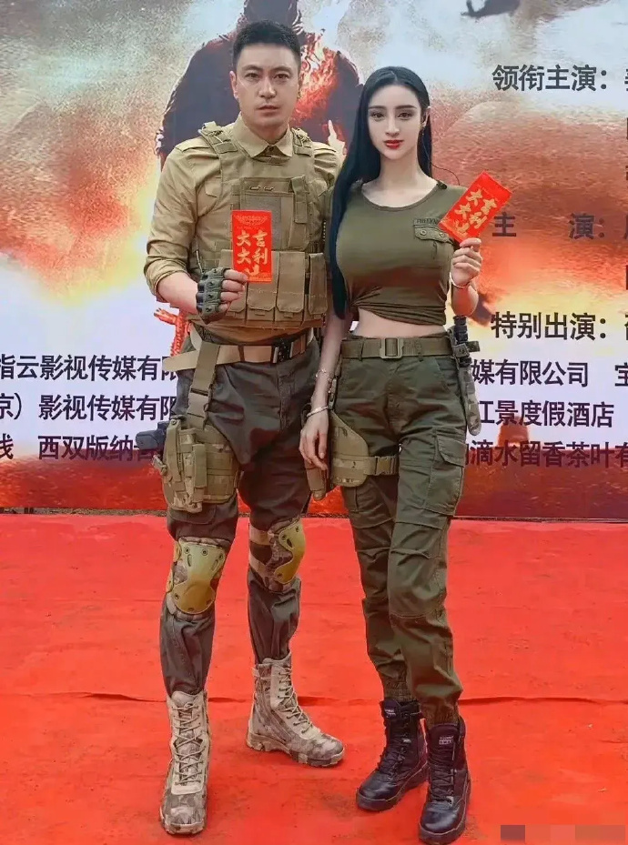 张天爱跟素人合影,胯真的好宽,大宅院似的