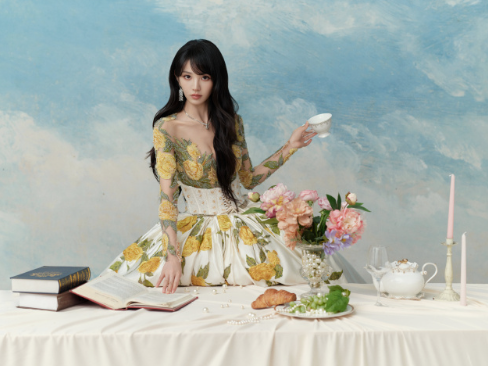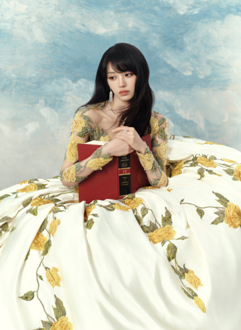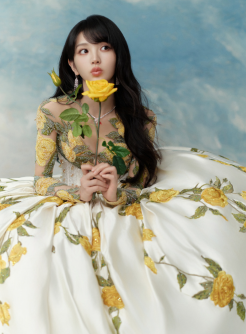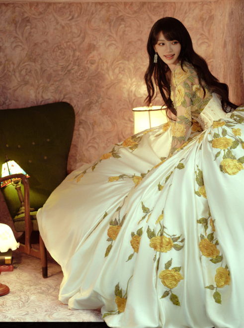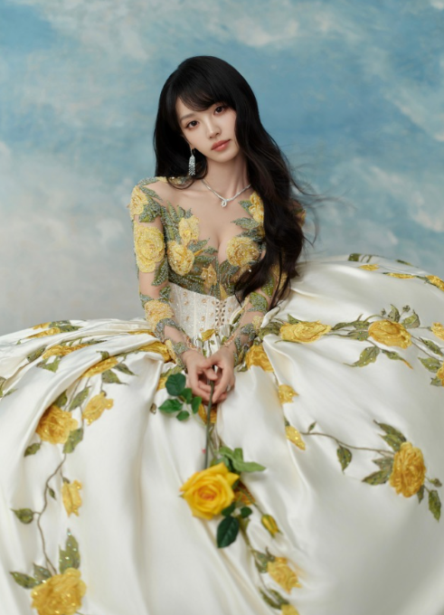 田曦薇的黄玫瑰公主裙,美的好像一副油画