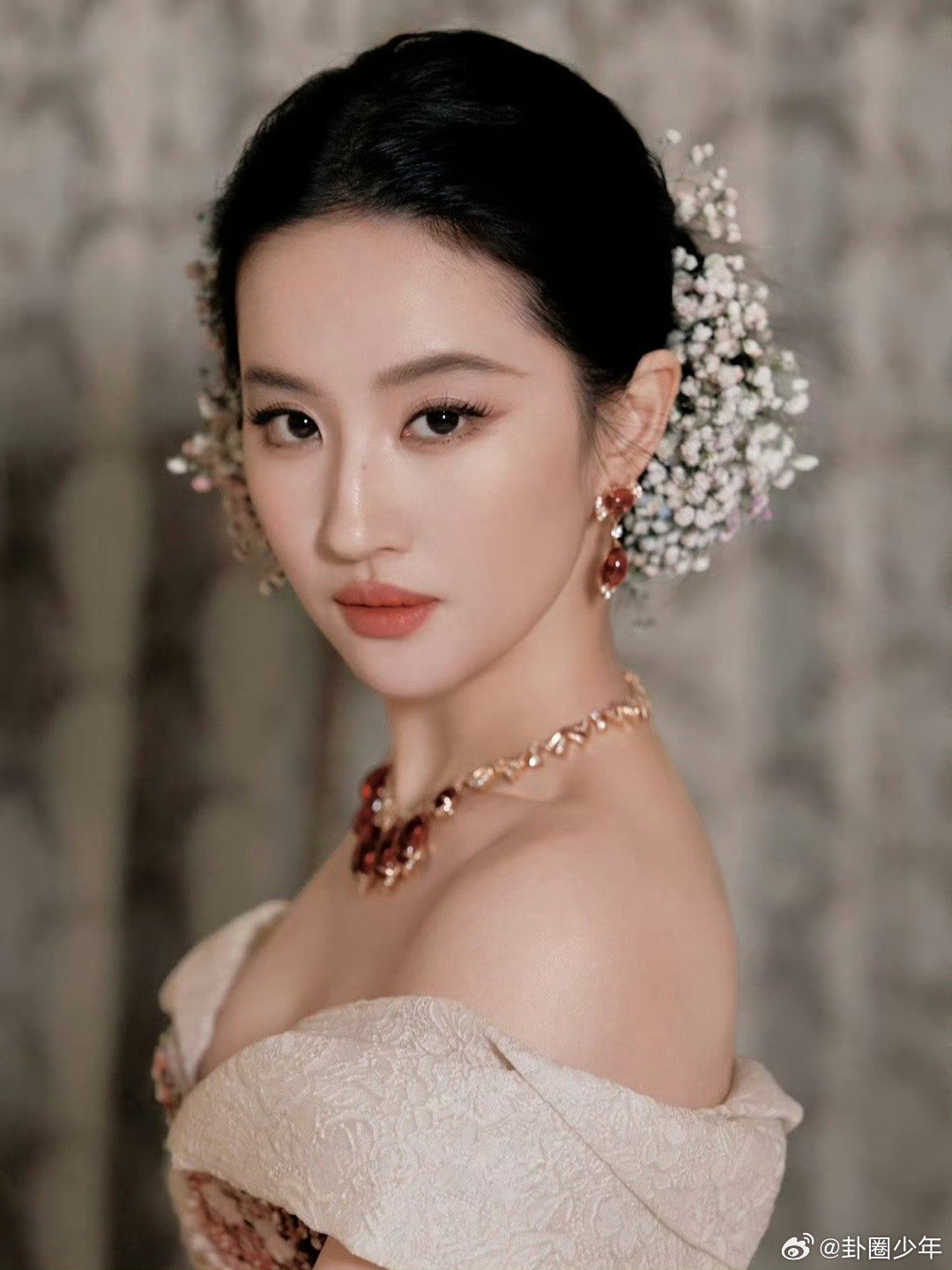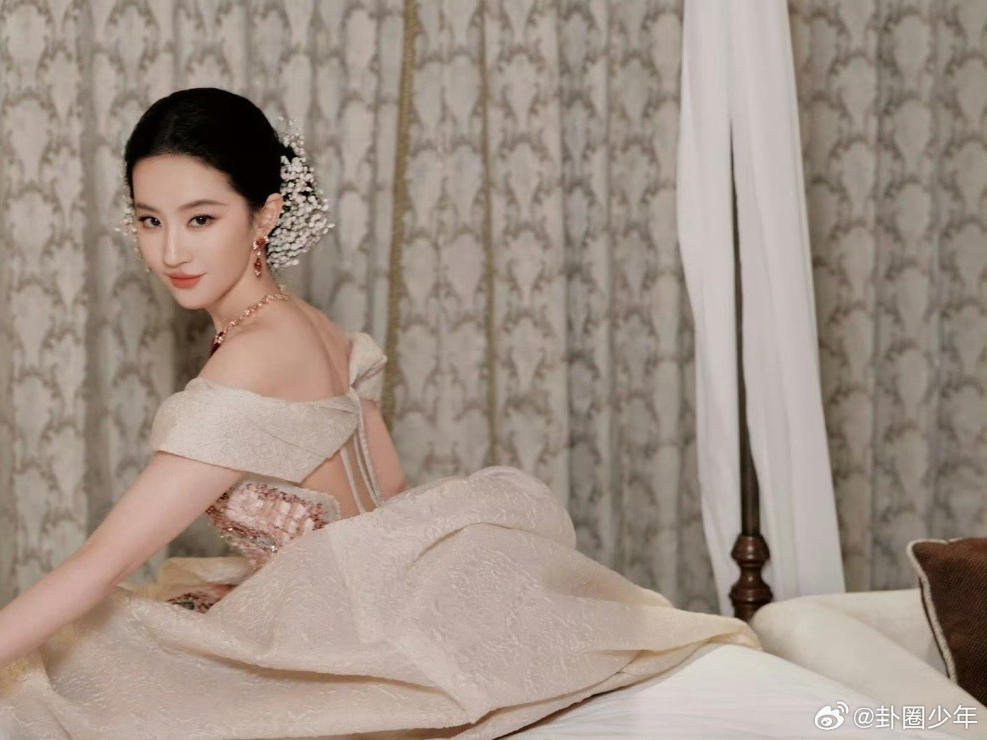 针脚藏韵,露肩含章,刘亦菲身着绣花露肩裙,于光影间晕染东方雅致,将古典诗意与现代柔美揉成了具象的浪漫。