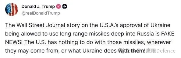 稍早些,乌克兰军队使用“风暴阴影”巡航导弹打击了俄罗斯境内的布良斯克化工厂,《华尔街日报》报道称,此举是因为特朗普政府解除了对乌克兰使用“风暴阴影”导弹打击俄罗斯纵深地区的关键限制,但特朗普随即发帖否认,称《华尔街日报》的报道是假新闻:“无论导弹来自哪里,也无论乌克兰怎么使用这些导弹,都与美国无关。”