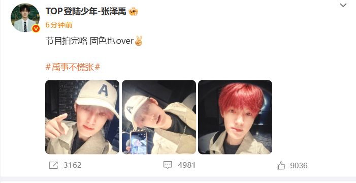 张泽禹的固色工作结束,此次结束是在他完成节目拍摄之后实现的。节目收尾与固色完成的同步,展现工作安排的合理性。张泽禹固色over张泽禹节目拍完固色over