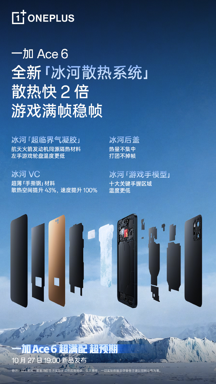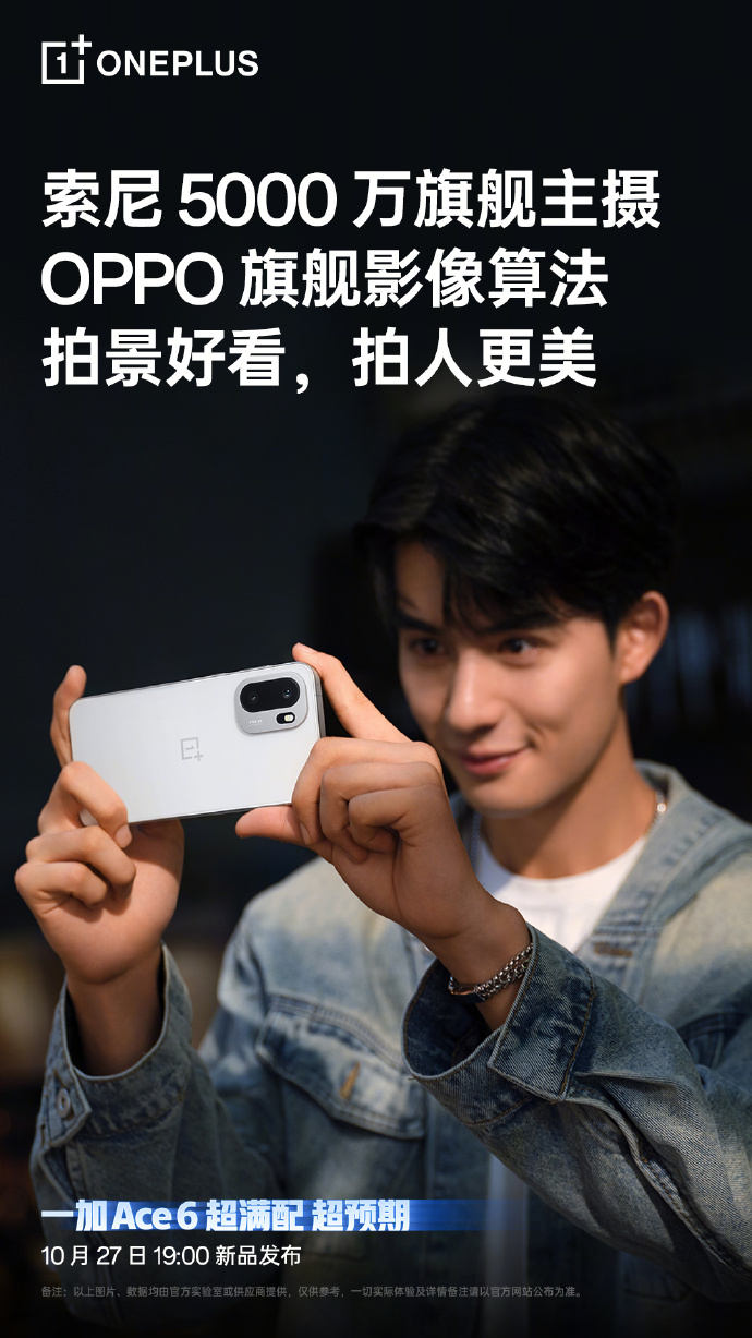 一加Ace6搭载索尼 5000 万旗舰主摄,搭配 OPPO 旗舰影像算法,拍景更通透,拍人更自然。还有最先进的散热系统,全新「冰河散热系统」,散热快 2 倍!而且是同档里的唯一「电竞三芯」,性能猛、信号强、触控准!10月27日晚上七点一加15和Ace6新品发布