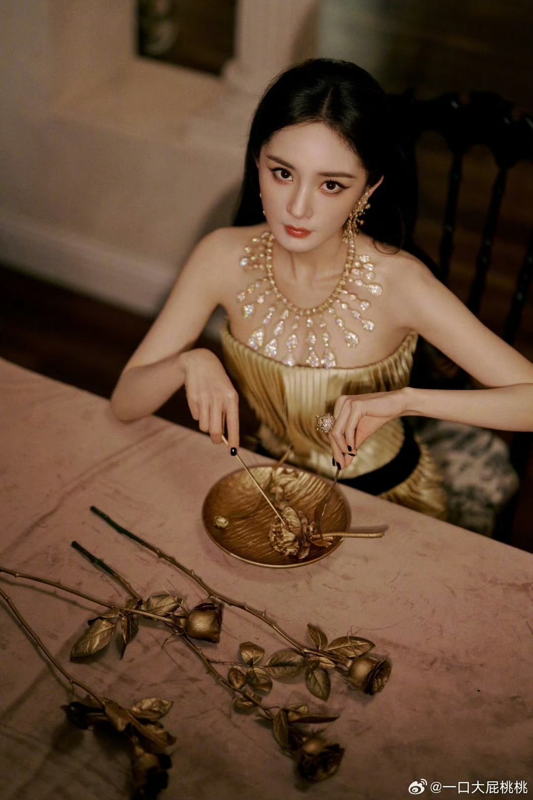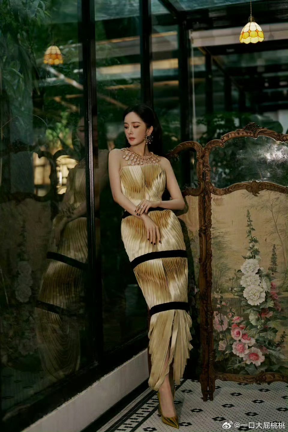 杨幂VOGUE氛围感神图杨幂VOGUE金色战裙杨幂这套造型好好看,女王级别的!