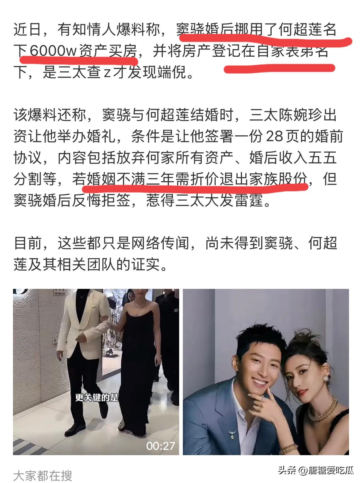 若婚姻不满三年需折价退出家族股份 到明年他俩的婚姻才满三年了,所以现在是窦骁不肯离吗?何超莲在闹,之前何超莲生日也是姐姐弟弟和妈妈一起过,而窦骁只是发了个“hbd”,何超莲都没回复。 窦骁已经在横店住了几个月了,期间没有回过香港。 不知道为什么大家都在同情男方,说实话,放在普通人身上不也是拼尽所能去迎娶自己心爱的姑娘吗?