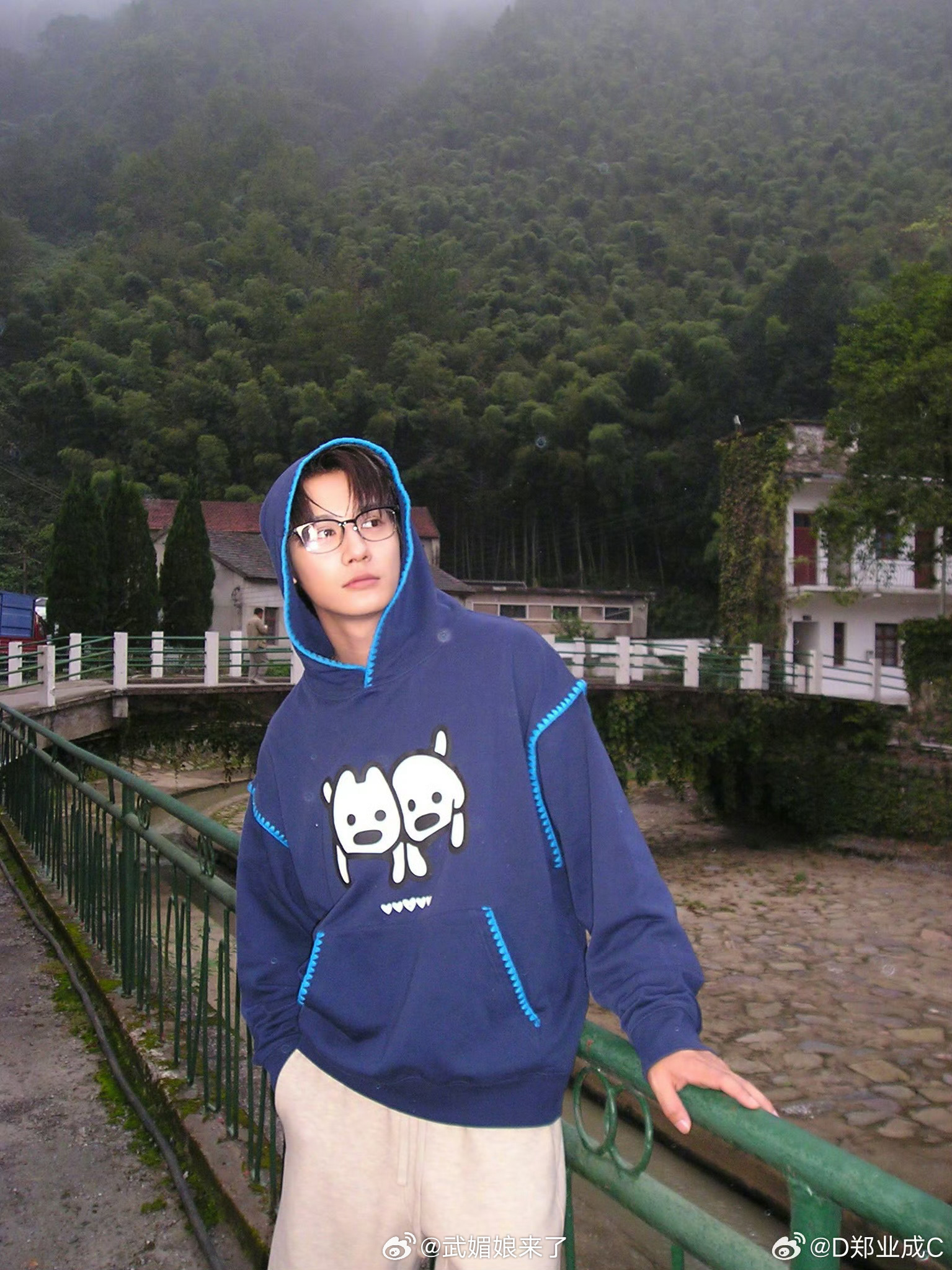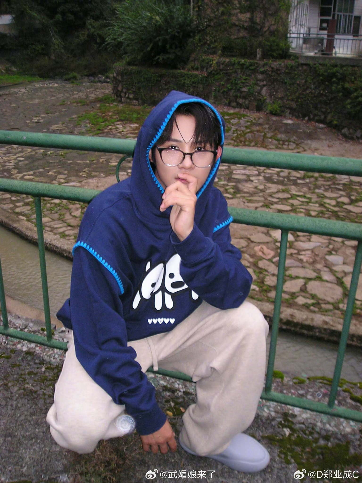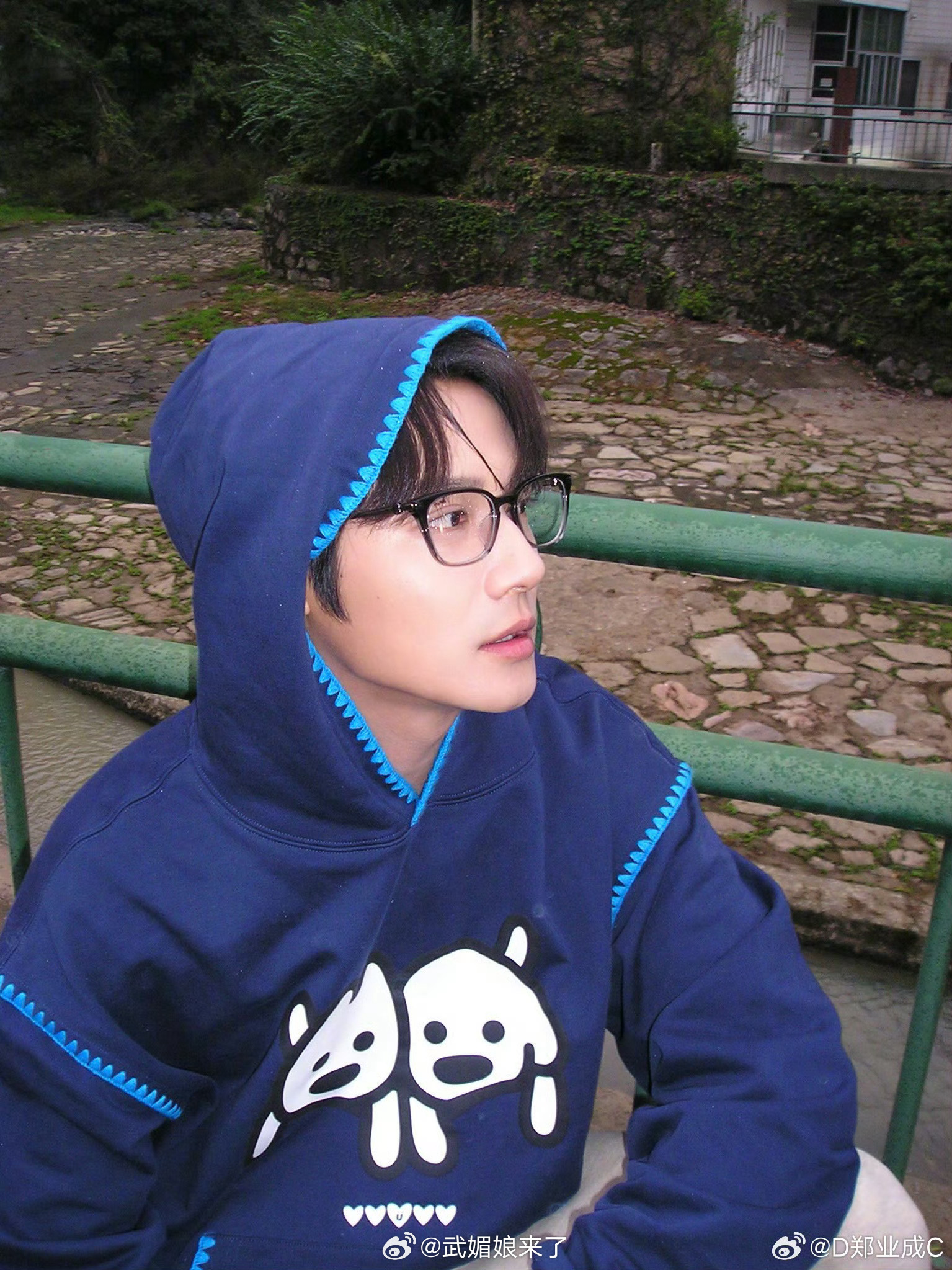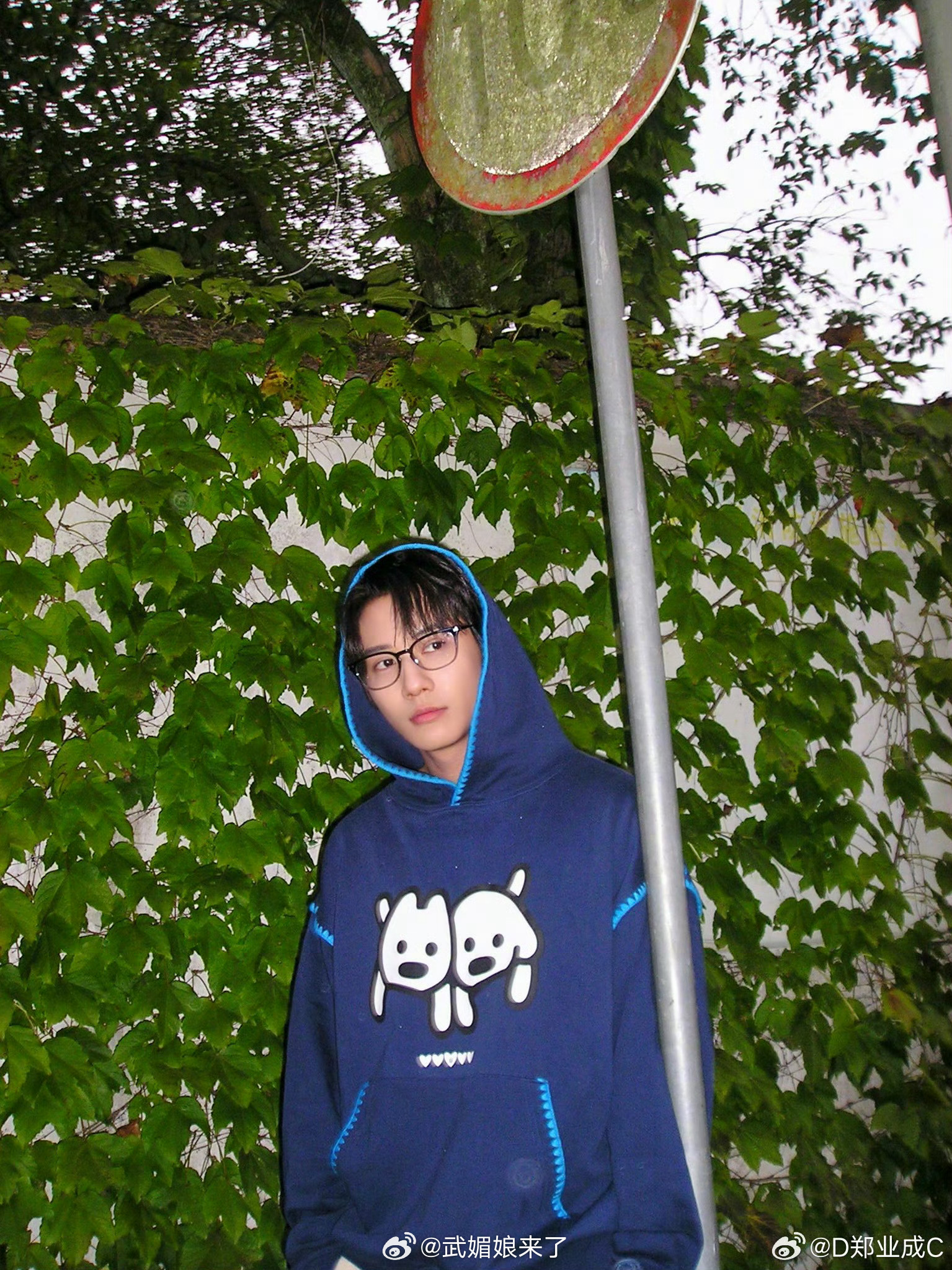 郑业成蓝色连帽衫营业可爱满分帅气满分好看的人真的不挑环境[憧憬]