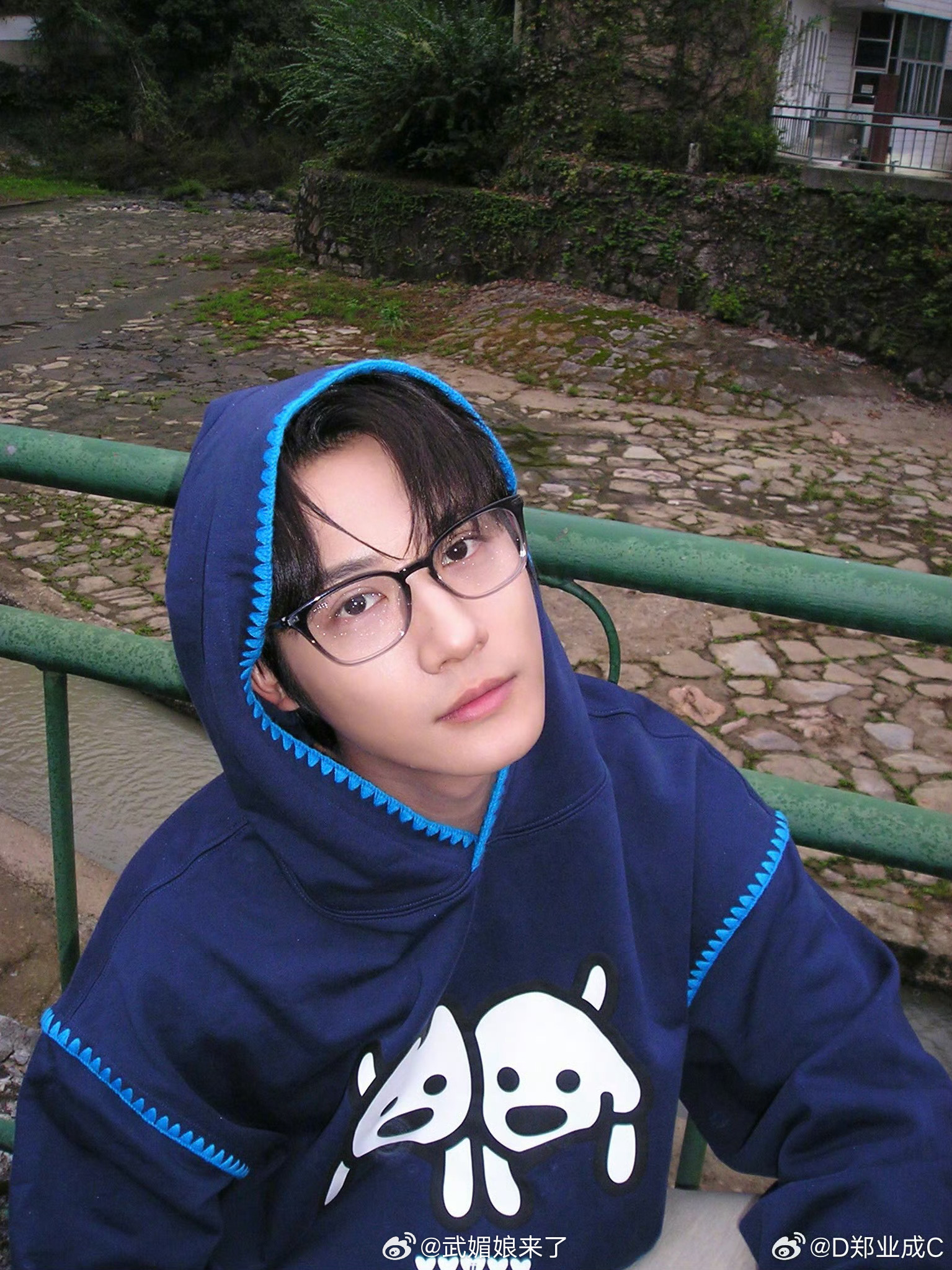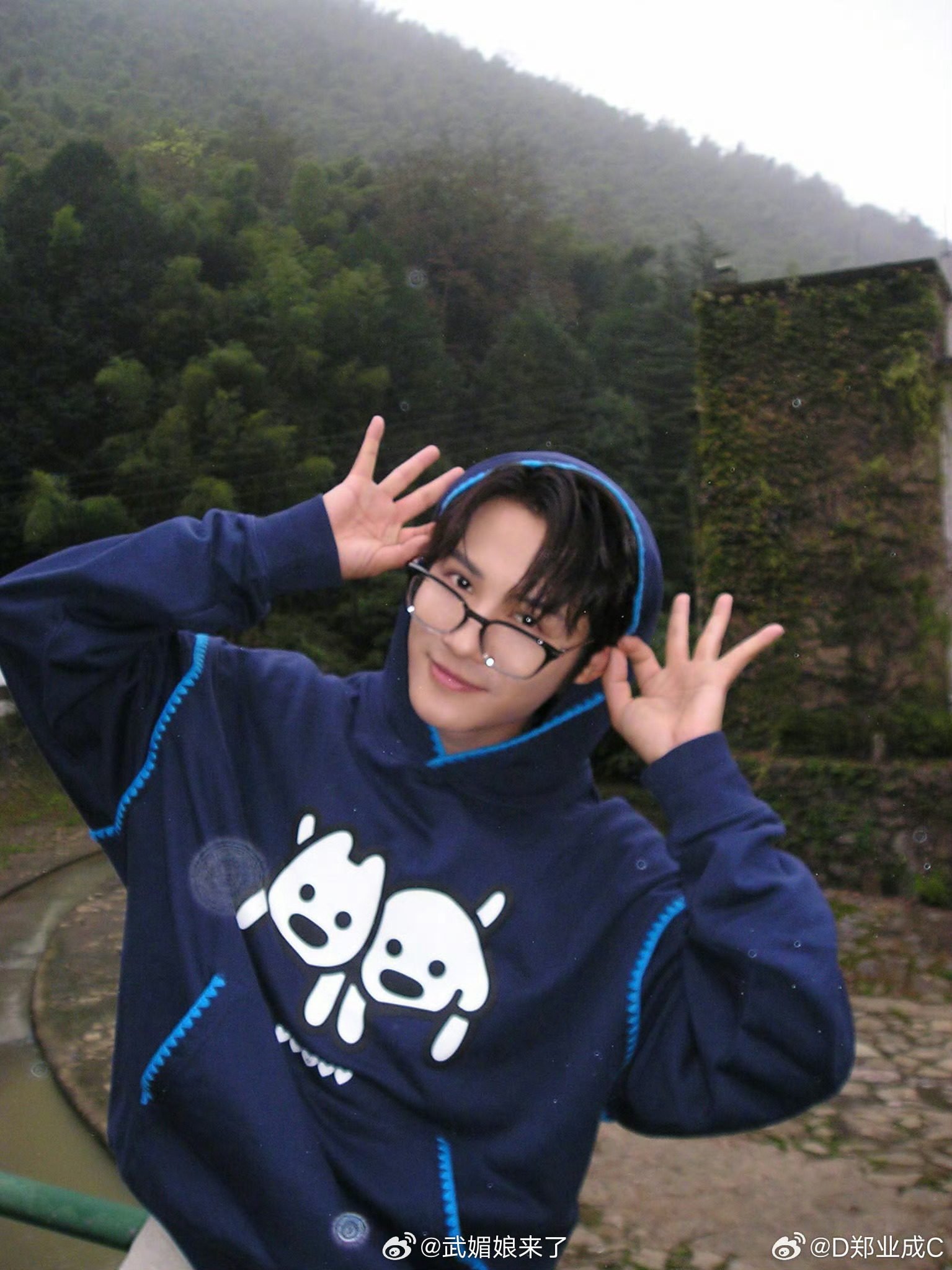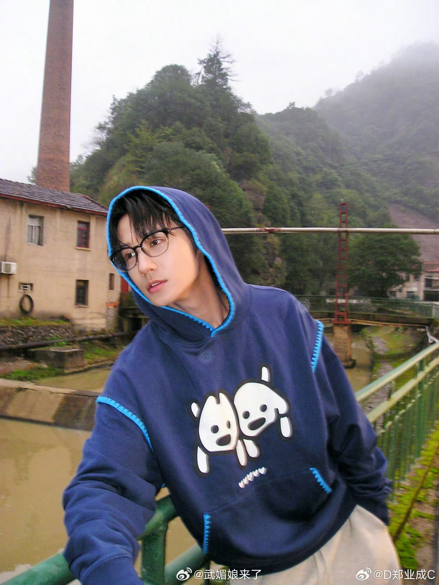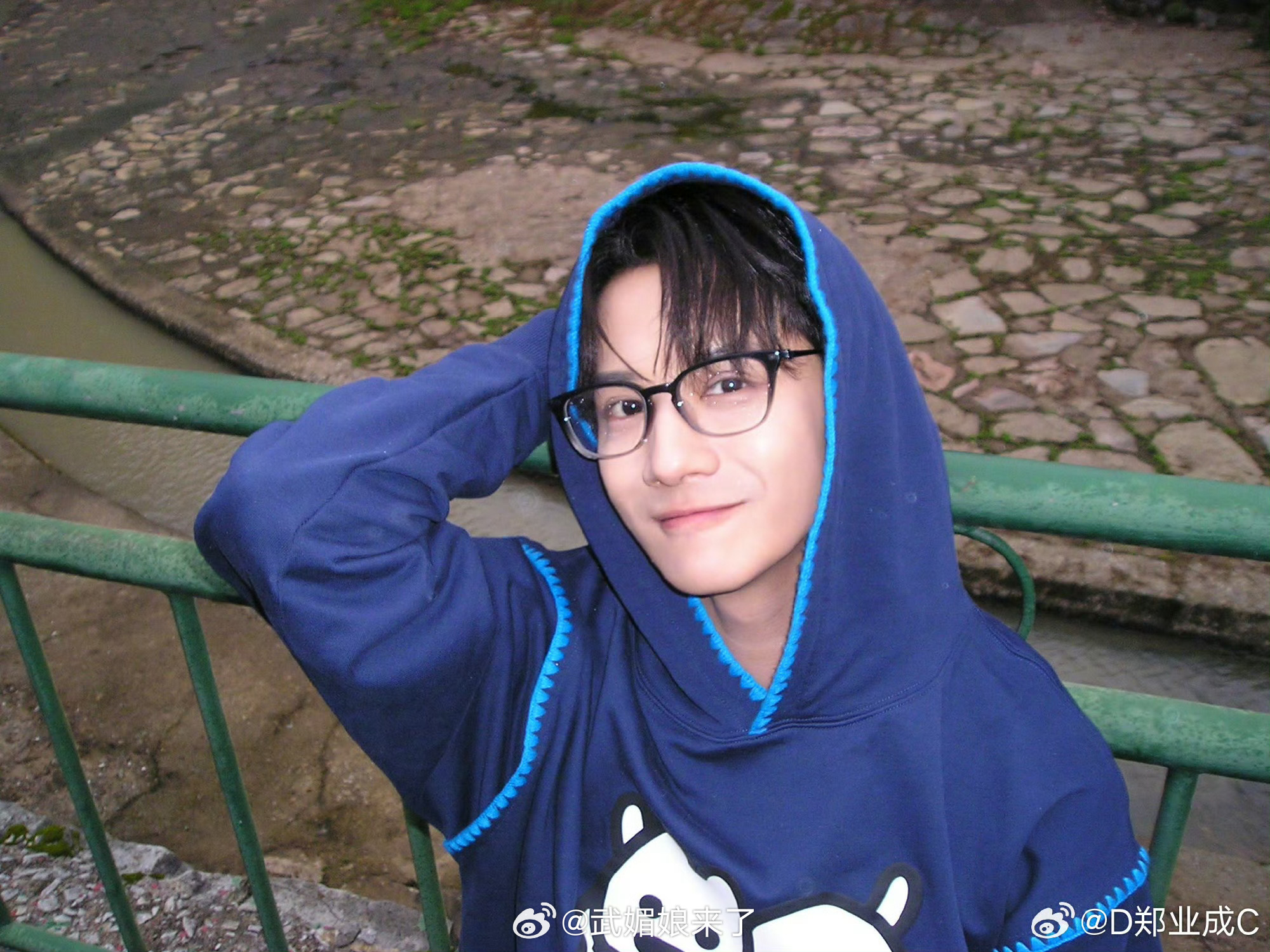 郑业成蓝色连帽衫营业可爱满分帅气满分好看的人真的不挑环境[憧憬]