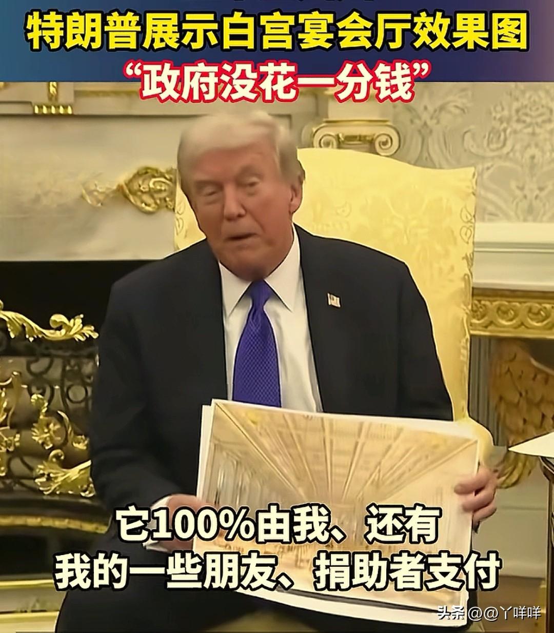 特朗普真是个实干家! 这不,特朗普为了修建豪华的宴会厅,喊施工队把白宫拆了。你不要以为特朗普是败家,其实特朗普贼聪明,硬是没花政府部门一分钱。那么钱从哪里来的呢?特朗普特意邀请了企业家“金主”苹果、亚马逊、洛克希德马丁等十多家为豪华宴会厅注资,目前已经有2500万资金到账。他计划在他卸任前完成这一伟大建筑,为美国历史留下浓墨重彩一笔。有时候,我真觉得特朗普是老天派来收拾美国的,玩的就是出其不意,异想天开,治理国家、做生意全凭喜好!你说呢?