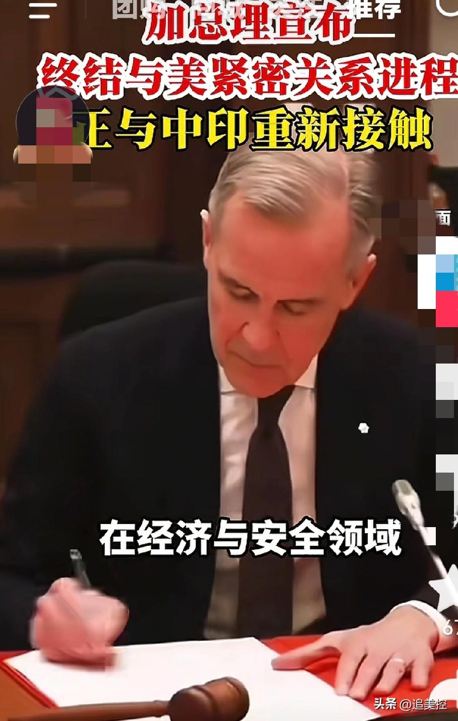 这可能是最令特朗普恼火的吧,加拿大总理宣布终结与美国密切关系进程,在积极和中印等国重新接触,在安全与经济领域以摆脱与美国的密切依赖关系。加拿大总理卡尼准备出席亚太经合组织非正式领导人会议和东盟峰会期间,将于多国领导人进行见面会谈。如果说美国的关税战贸易战针对的是中国,这枪口真的对准他自己了。难怪外媒称,不少世界大国都在暗自欢喜中国反制美国,百年未有之大变局的确没有辜负历史的期待。美国别说不愿承担世界警察的责任了,就是有,也是有心无力吧。迎来朝霞换新天!让关税战再飞一会儿也不是什么坏事。