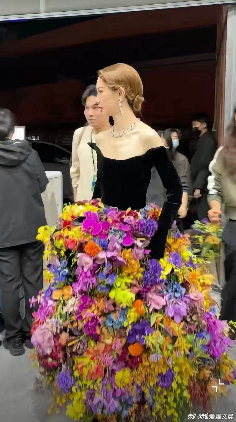 戚薇的裙子居然是真花 这条真花裙可以说是戚薇的时尚宣言,大胆、独特、充满创意,色彩斑斓却不显花哨,反而显得高级又灵动。欧阳娜娜和恩利忍不住凑过去看个究竟,杜华的好奇提问和戚薇的幽默回答更是让现场气氛欢乐十足。