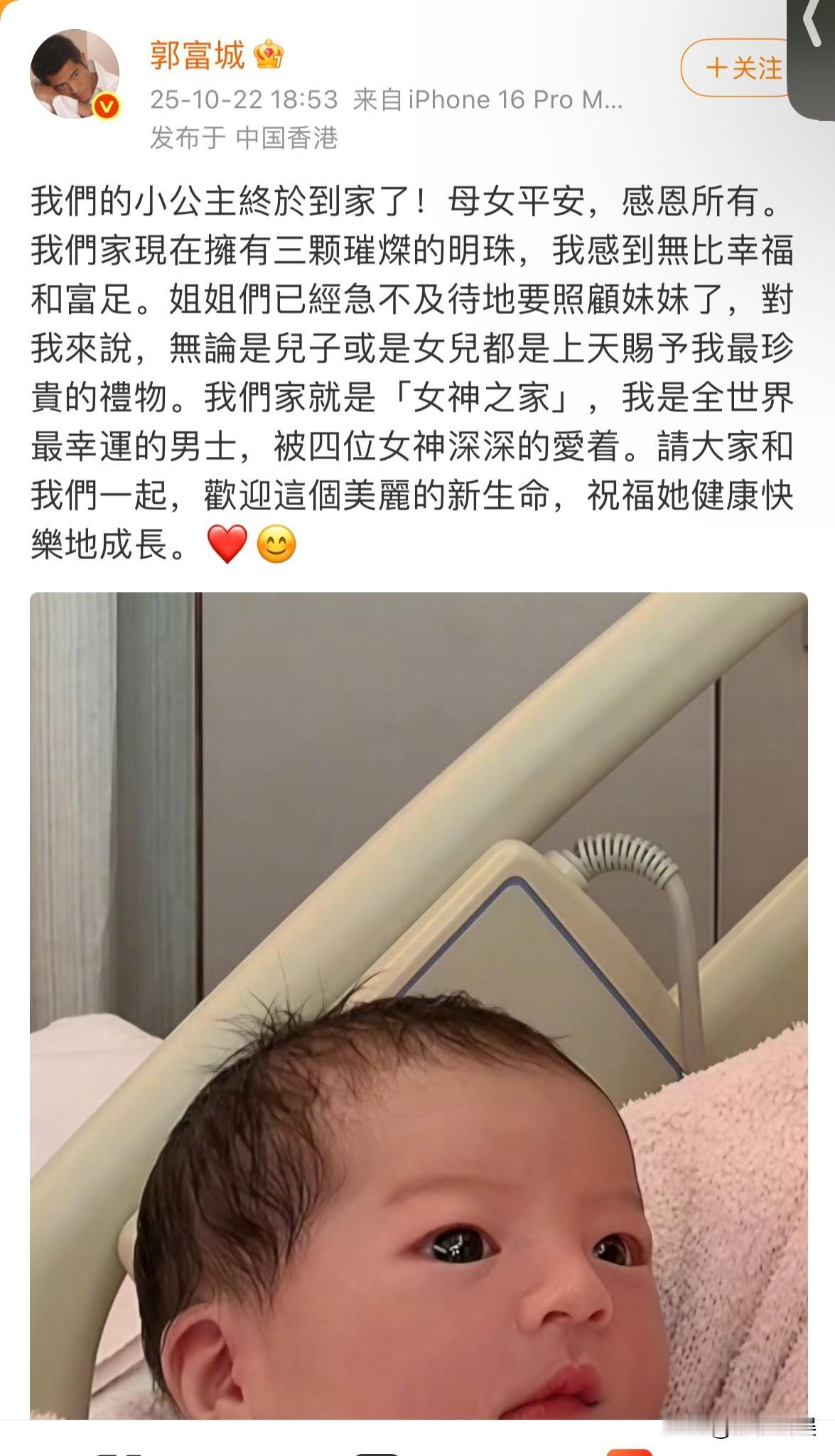 恭喜天王郭富城喜提三胎千金。 最近看到很多人都说郭富城这个年纪还在拼三胎,就是想要个儿子,毕竟前面两胎都是女儿,当然希望儿女双全。 按照郭富城现在的财富地位,其实生男生女确实已经不会太在意了,毕竟是在香港想要鉴别应该是懂的都懂。 就像他自己说的,他是“女神之家”,家里可是有四位女士都会爱他,他是家里唯一的男士,多幸福的事呀! 也有网友调侃四大天王都是岳父命,目前看来还真是这样的。 祝福郭富城一家五口一直都幸福美满下去吧!