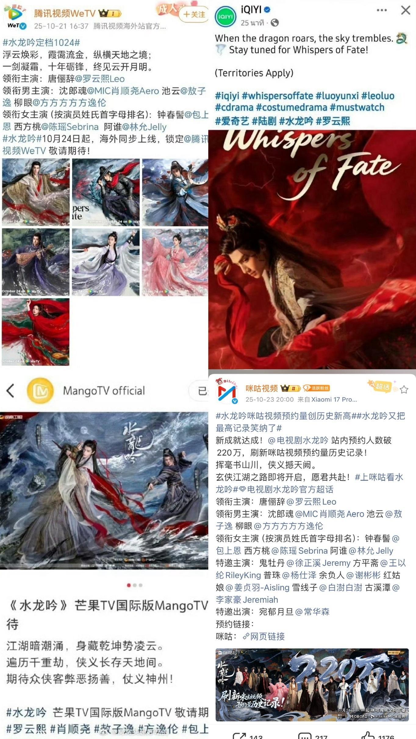 在所有平台买了水龙吟出口全球时,优酷限免了长月烬明[泪奔]记得明晚6点可以去芒果/咪咕抢罗云熙粉丝的水龙吟云包场