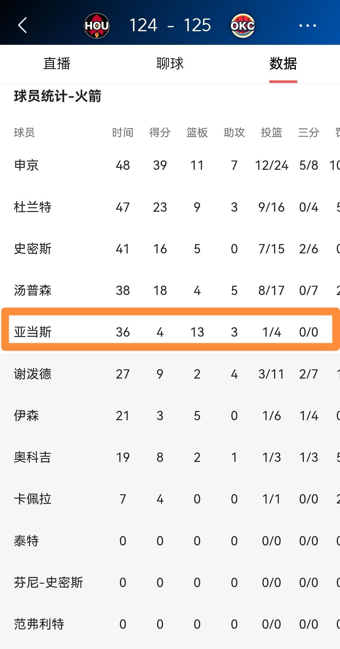 他没得分王的光环,但每一块篮板都砸在雷霆的胸口上。 第四节,他像块胶皮泥,贴着霍姆格伦的屁股不撒手。 不是靠跳,是靠屁股顶、靠腰顶、靠老命顶。 三个前场板,三个救命球。 加时最后两分钟,雷霆连个板都没抢到——不是他们不拼,是亚当斯把空气都挡成了墙。 没人夸他帅,但教练说:我们能出手,是因为他把该挡的人全挡死了。 这赛季他三分场次没多,篮板率却飙到生涯最高。 不是突然开窍,是把脏活当饭吃,吃出了门道。 火箭输球,但没人敢说他们软。 因为有个30岁的老中锋,用屁股给全队撑出了活路。 他不讲故事,只抢板。 你赢球靠球星,他让你输得起。