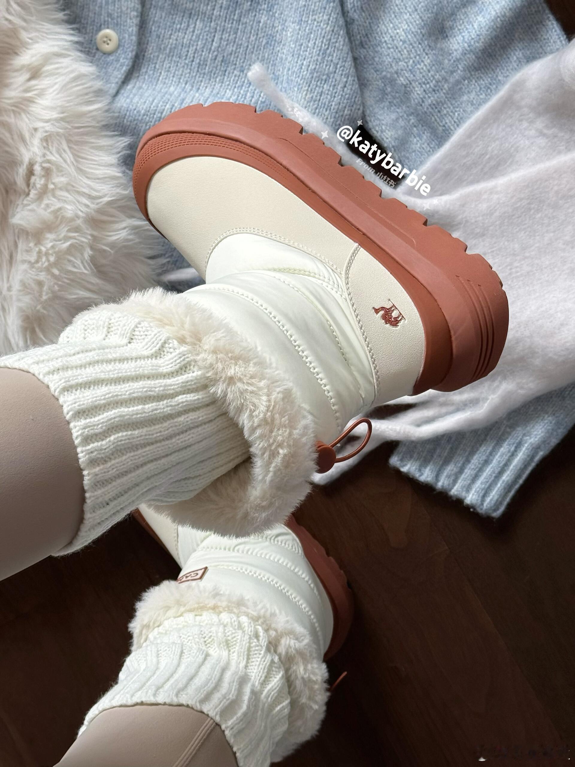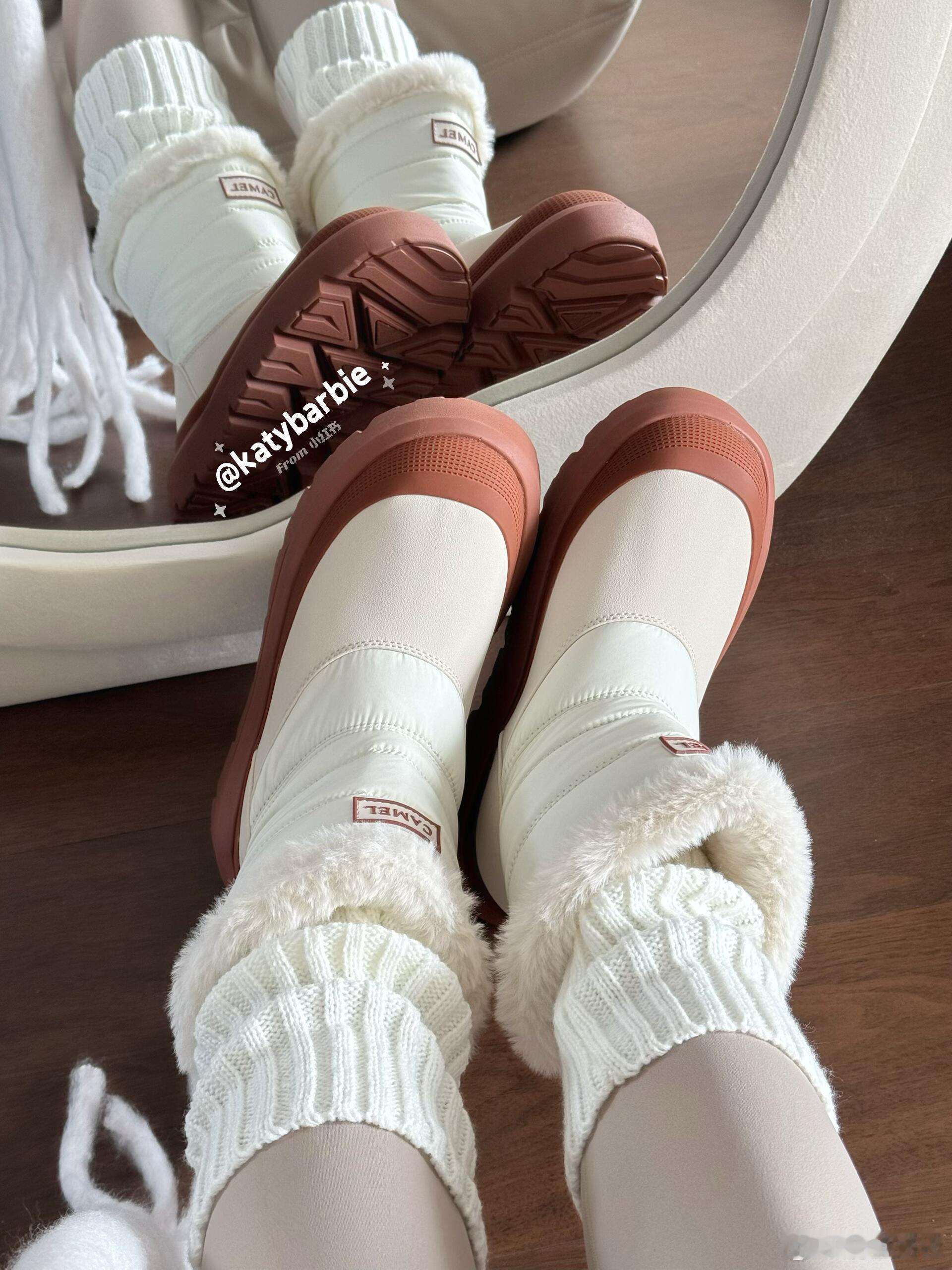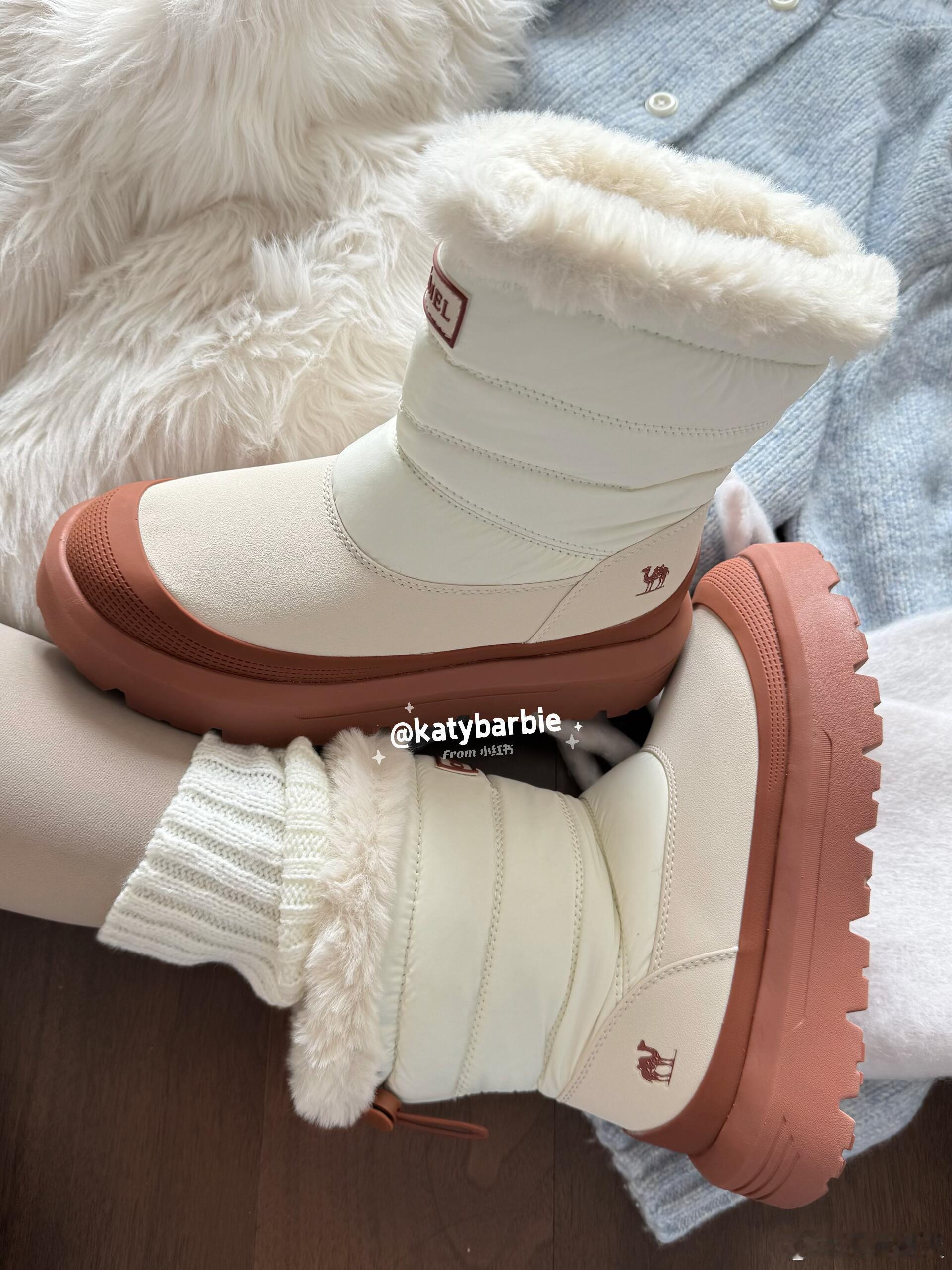 这双米白色雪地靴是冬日温暖与时尚的完美结合。鞋身采用质感尼龙面料,搭配蓬松的白色毛绒内衬与鞋口,确保极致保暖。厚实的棕色橡胶鞋底带有深锯齿纹路,提供可靠防滑性能。侧面的小巧骆驼图案为其增添一丝俏皮趣味。整体置于柔软的针织衣物与毛毯背景中,更烘托出温馨舒适的冬日氛围。无论是搭配袜套还是日常着装,它都能成为兼具实用功能与柔美风格的冬日必备单品。时尚鞋履
