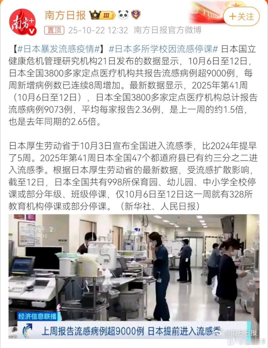 现在中日之间人员流动很大,国内也要开始积极防范应对,机场、车站、地铁等人员密集的公共区域,鼓励大家戴好口罩,降低感染风险。日本暴发流感疫情