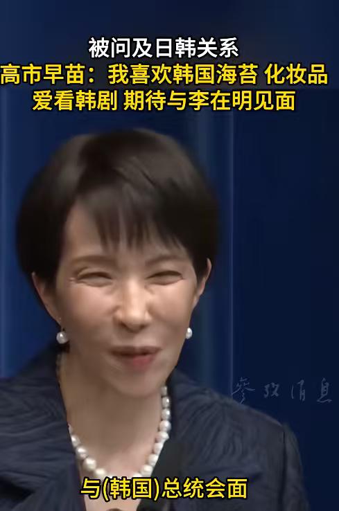 她当选后,对韩国是让出了善意,期待跟李在明见面。高市早苗当选日本首相后,被问及日韩关系。高市早苗满脸笑容的说,我喜欢韩国海苔、化妆品、爱看韩剧、期待与韩国总统李在明见面。李在明当选后,首访就去了日本,跟石破茂还发表了联合声明。如今,日本换了新的首相,此前的外交成果,估计都作废了。不知道这次是李在明先去见高市早苗,还是高市早苗主动来见李在明。总之,日韩关系应该没问题。但是我很想知道,这位64岁的老太太,打算怎么处理中日关系?