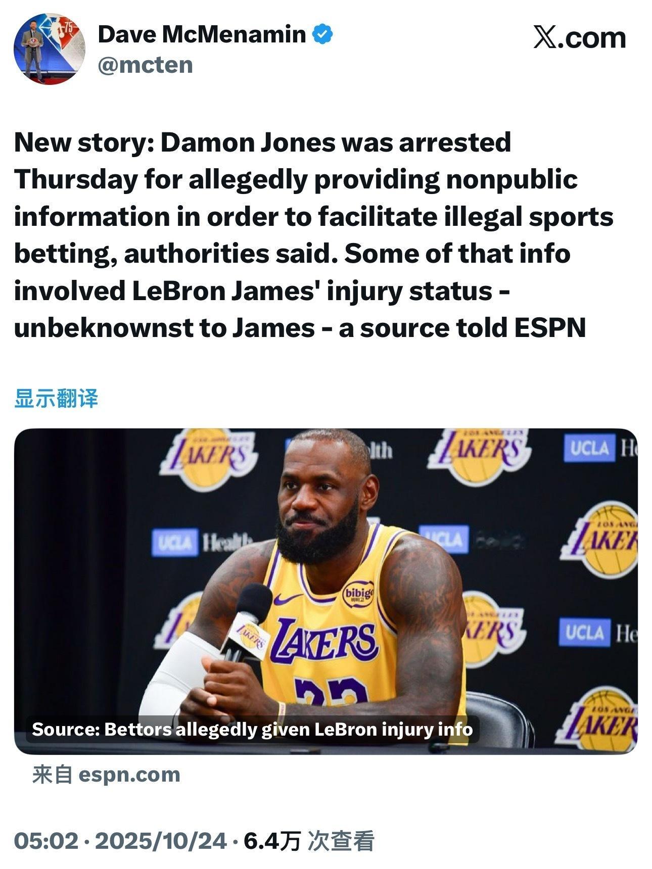 达蒙琼斯,被指控2023年提前泄露或出卖湖人球员缺席2月9日与雄鹿的比赛而牟利,以便他人据此下雄鹿队赢球。
