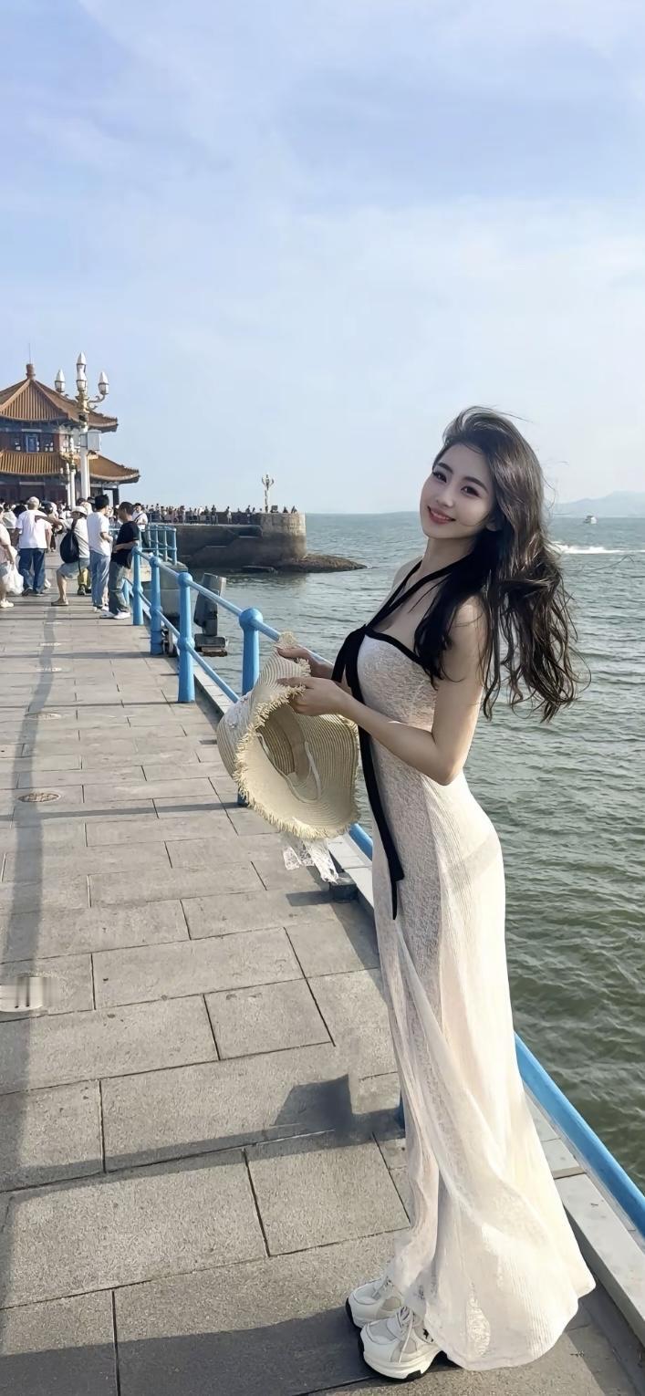 都市时尚少女,优雅蹲姿,黑白条纹连衣裙,微笑迷人,时尚手表点缀。