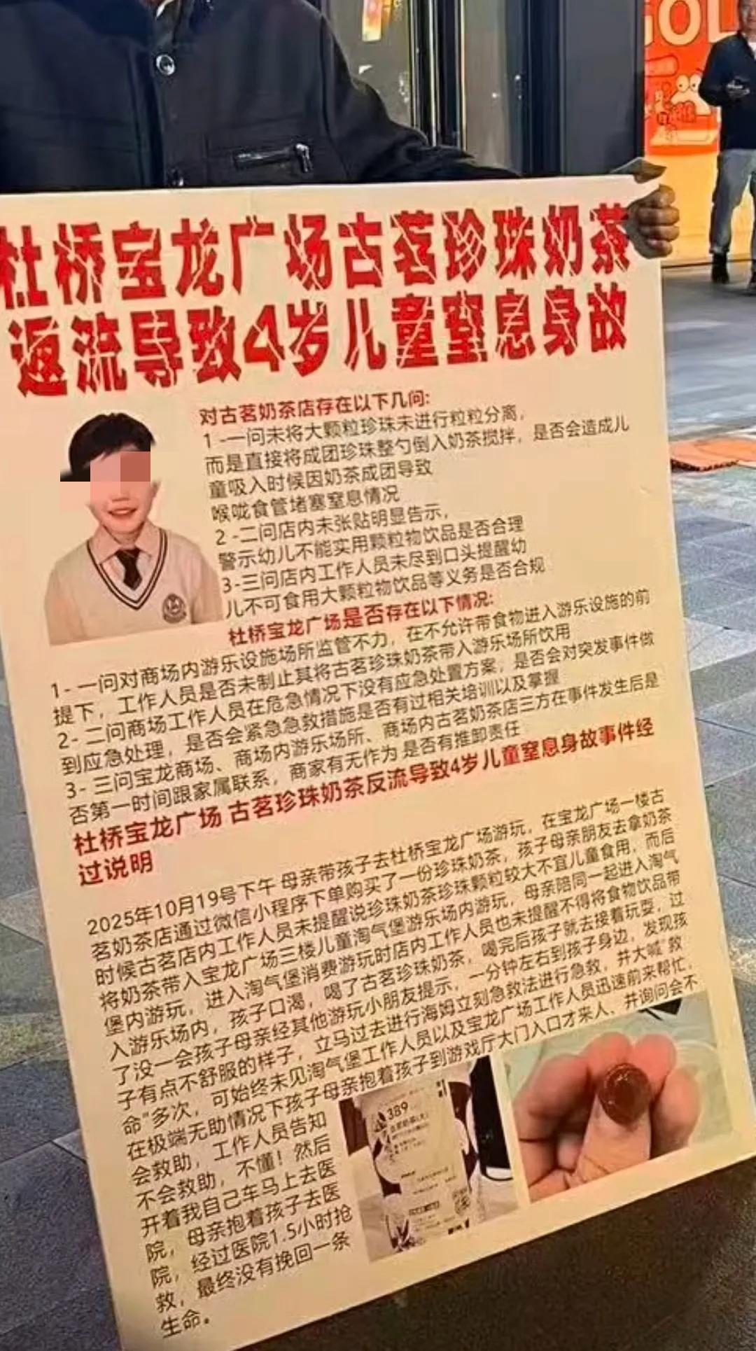 浙江一妈妈买珍珠奶茶给4岁孩子喝,因珍珠成团,导致喉咙食管堵塞窒息,抢救无效死亡。现家长准备找该奶茶品牌进行维权,目前在各个单位相关人员陪同下,拍视频举证,吐槽珍珠粘性强,是否儿童可以饮食。 对于这三问,真是离谱了!珍珠奶茶是妈妈主动购买的,妈妈朋友去拿的,店家怎么知道妈妈是买给4岁的小孩食用?怎么做到提醒义务?且孩子饮用后,妈妈全程未看护。 医学界早已明确:珍珠、果冻、葡萄等Q 弹或圆形食物对幼儿存在窒息高风险。4岁幼儿咀嚼和吞咽能力尚未完全发育,家长提供此类食品本身就是违反基本安全常识。 投诉游乐场还情有可原,工作人员未掌握海姆立克急救法且反应滞后,属于应急管理疏漏。投诉奶茶店,整一个巨婴逻辑。 整个悲剧根源是在于家长监护责任缺失,家长维权行为像是推卸责任,模糊事件焦点。也提醒家长应关注儿童看护常识普及和急救技能培训。